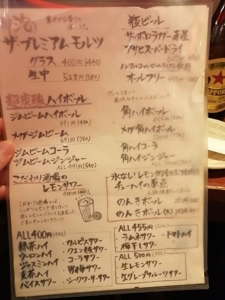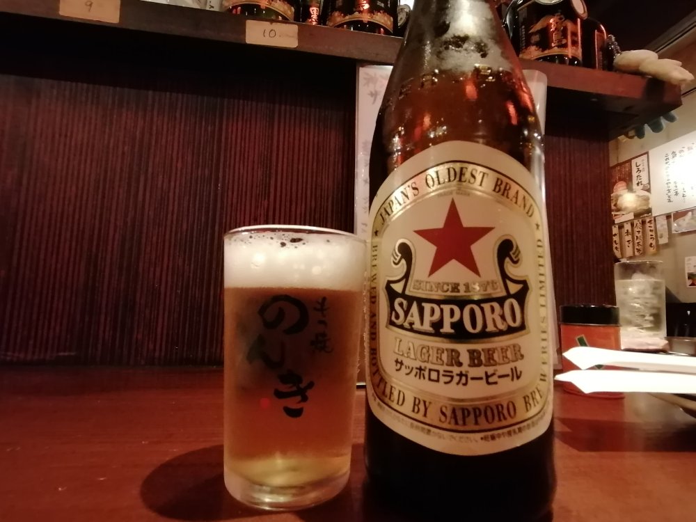 店内に入り、まずはビールで乾杯。選んだのはサッポロラガー、通称「赤星」の中瓶(690円)。このビールの程よい苦味とコクは、喉を潤しつつも食事を引き立てる名脇役。一日の疲れを忘れさせてくれる瞬間です。