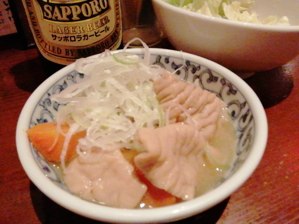 お通しはキャベツのざく切り(330円)。シャキシャキとした食感が楽しめ、さっぱりとした味わいがビールとの相性抜群。胃を軽く整えながら次の料理への期待が高まります。