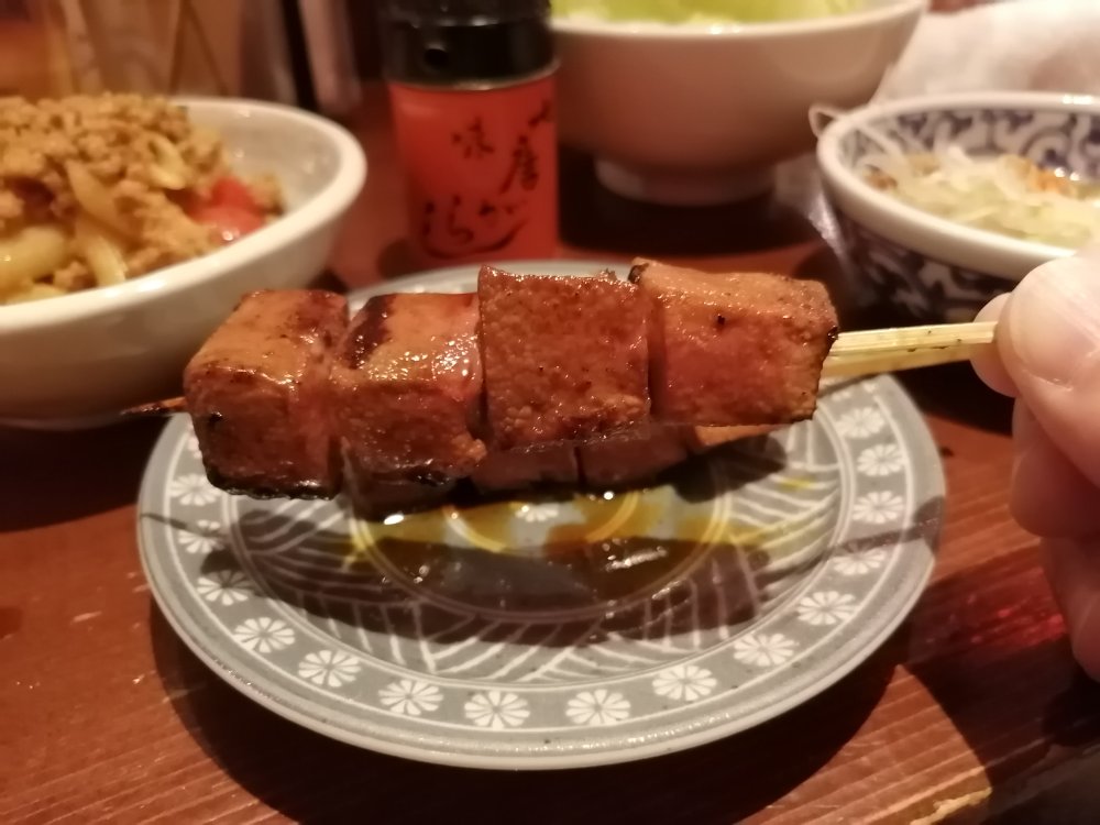 追加で頼んだ「れば」(170円)は、焼き加減が少し強めだったものの、しっかりとした味付けが特徴的でした。丁寧に焼かれた串焼きは、どれも手軽な価格でお財布に優しいのが嬉しいポイント。