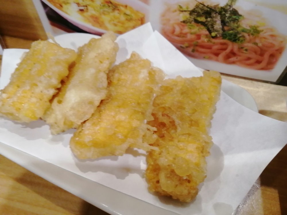 再び200円メニューから、「コーン揚げ」をオーダー。甘みのあるコーンがサクサクの衣に包まれ、まるでポップコーンのような軽い食感が楽しめます。箸休めにもぴったりの一品です。