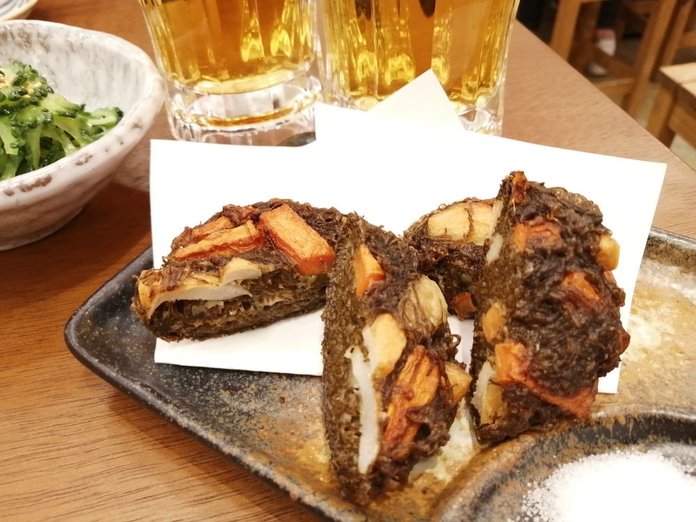 揚げたてでサクサクなもずくは、ほんのり塩味が効いていて絶妙な旨味。モッチリとしたもずくの弾力もたまりません。ビールとの相性も抜群で、これだけでも沖縄気分に浸れます。