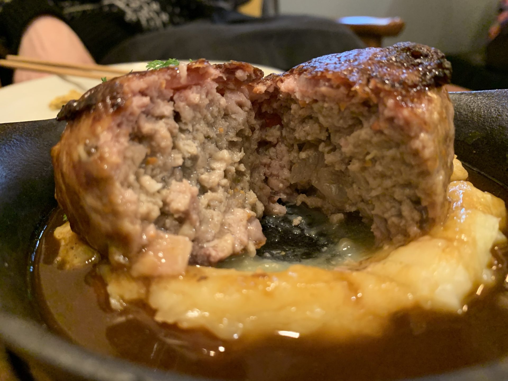 続いて「アヴァジュレ」と「網脂ハンバーグ」をオーダー。アヴァジュレは濃厚ながら後味が軽やかで、ワインとの相性も抜群。網脂ハンバーグは、外は香ばしく中はジューシー。ナイフを入れると溢れる肉汁に、思わず笑みがこぼれます。