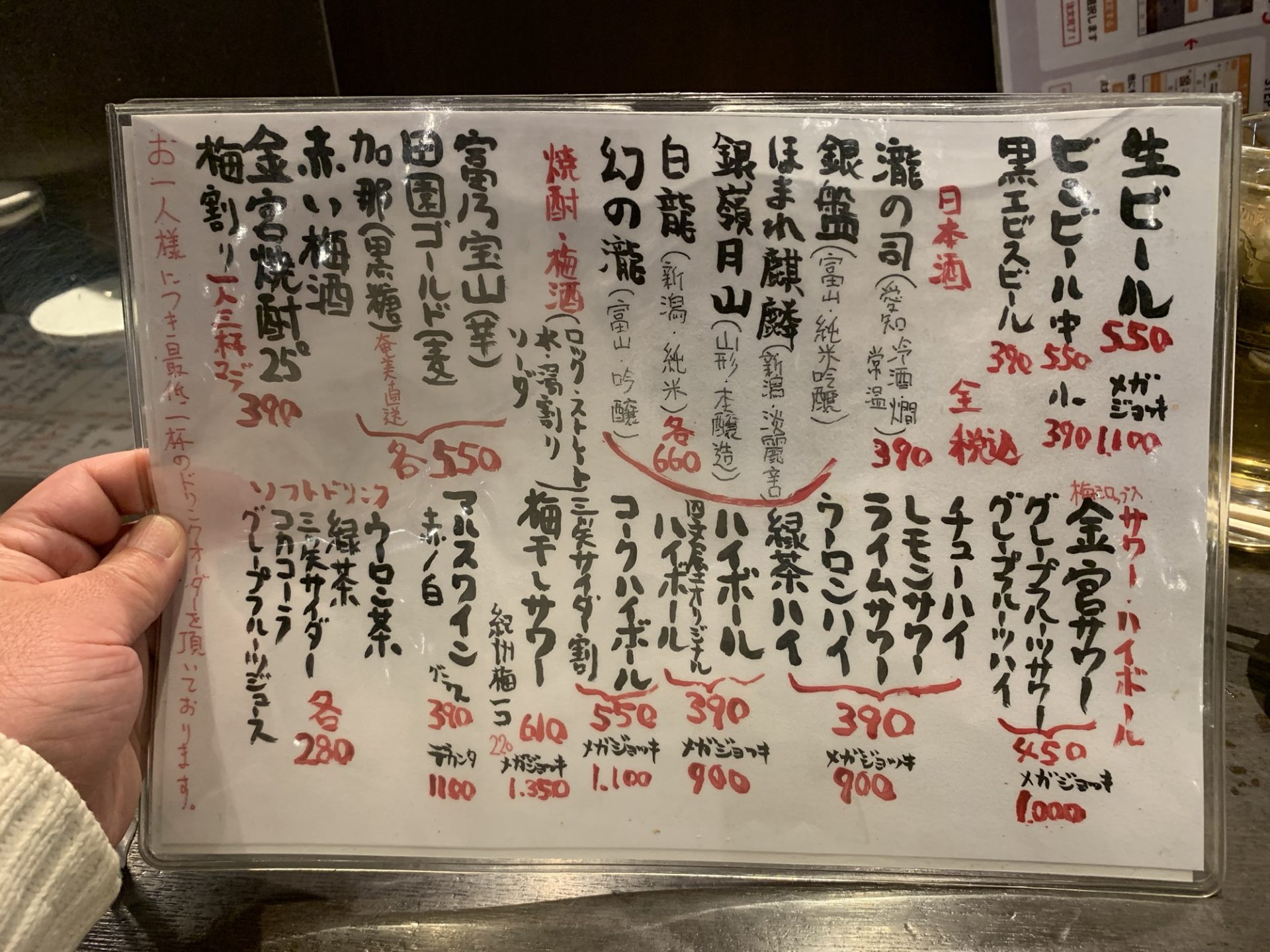 - 特徴:立ち飲み、安価なおつまみとドリンク、駅チカ