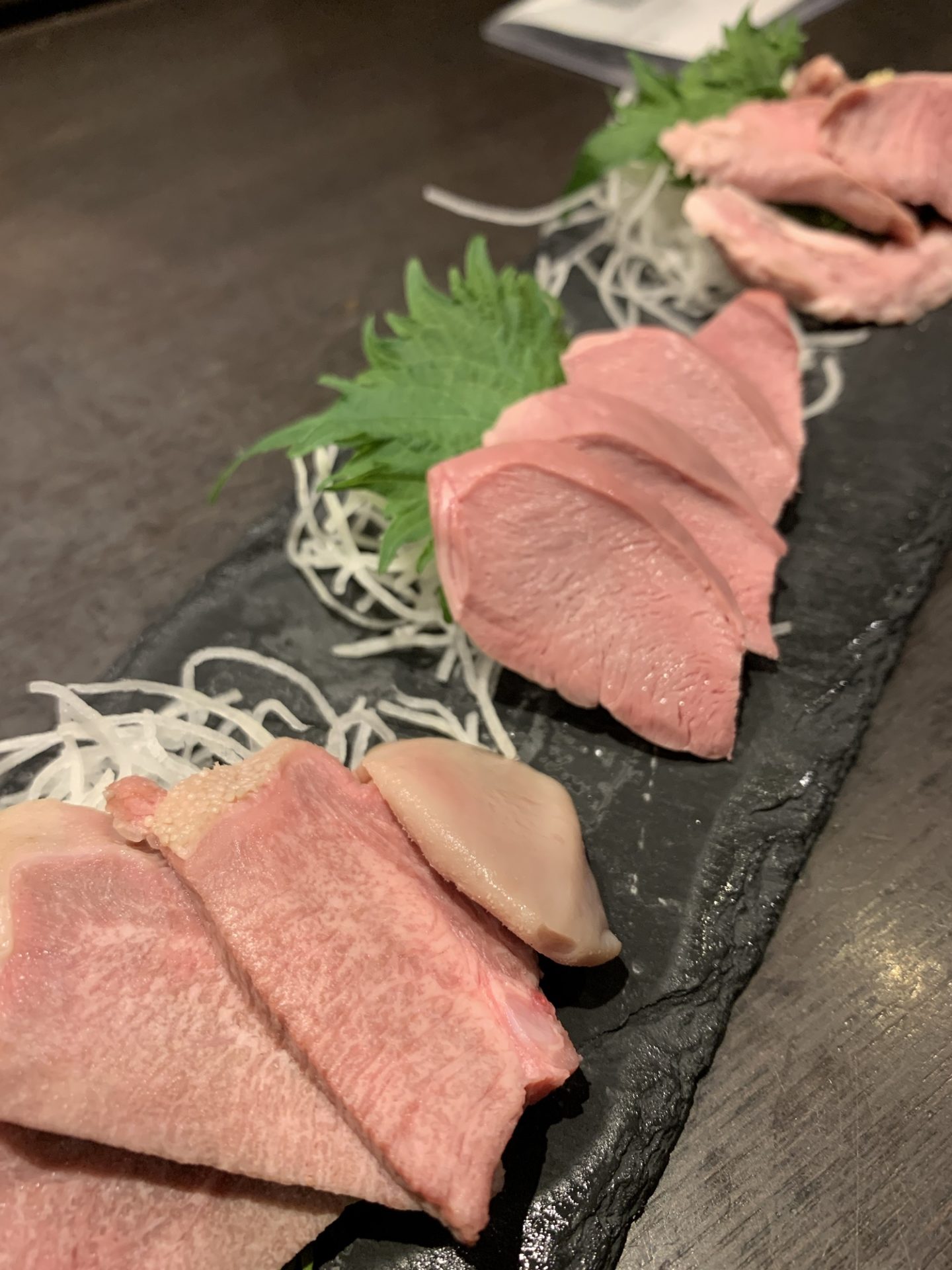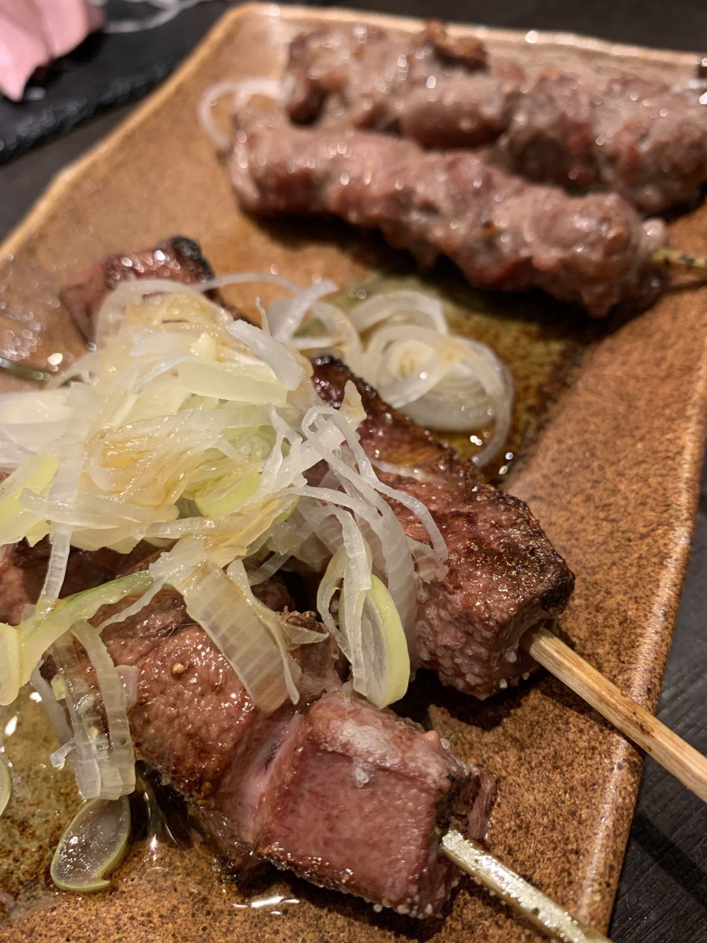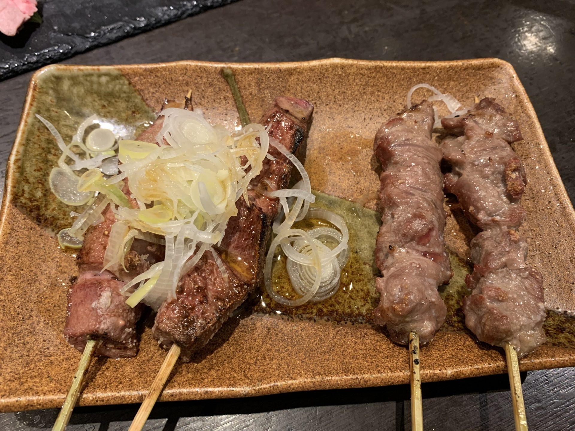 お通しの「ごぼうのキンピラ」は、しっかりと味が染み込んでいて、程よい甘辛さが絶妙。そして「豚冷製3点盛」は見た目も華やか。脂身の旨味が際立つ豚肉が口の中でとろけます。焼きとんでは「レバごま塩」と「カシラ」を注文。丁寧に焼き上げられたレバーは、ゴマの風味が香ばしく、カシラは歯応えと肉の旨味が楽しめる、これまた大満足の一品でした。