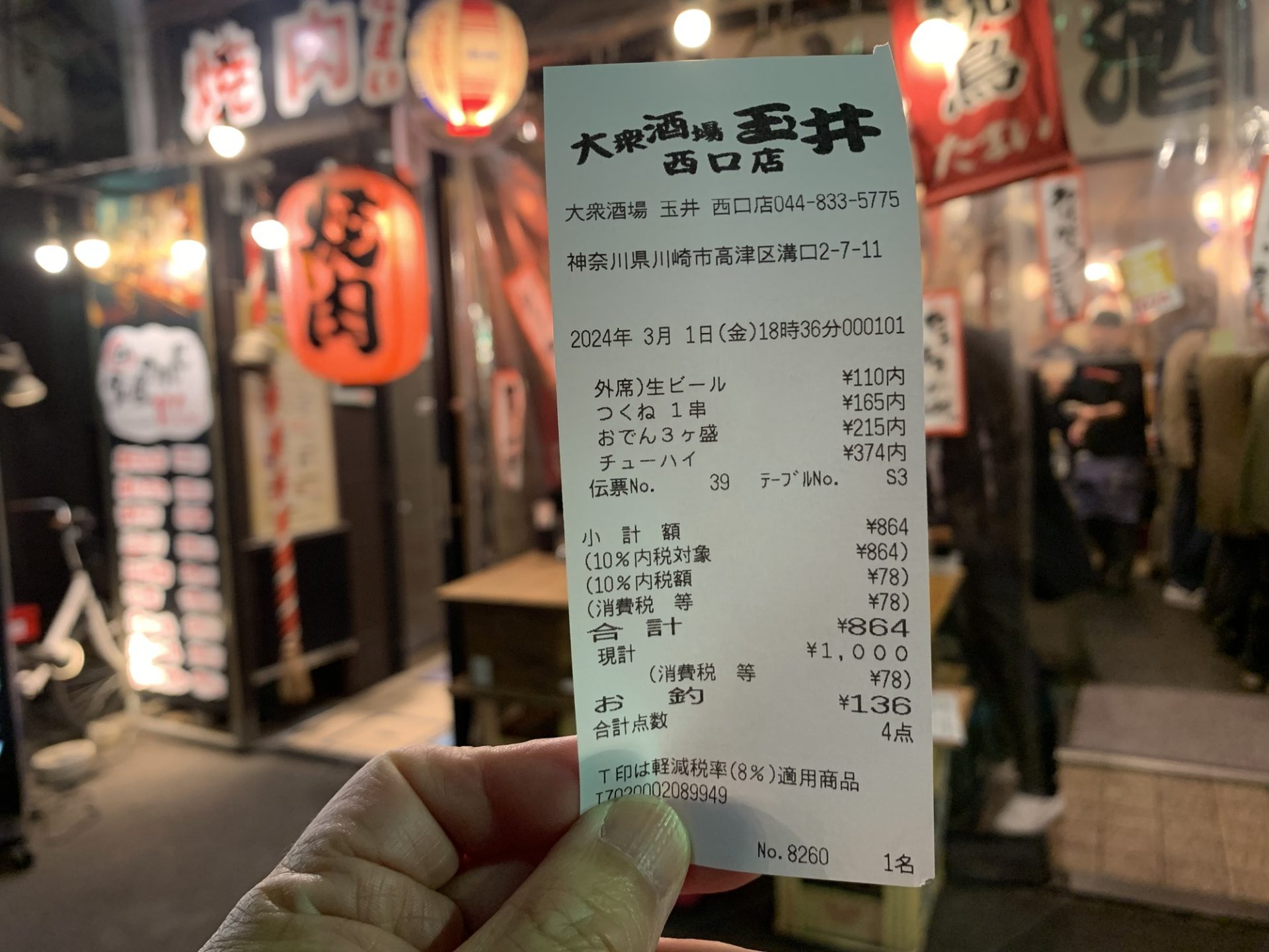 溝の口駅から徒歩1分、西口商店街に佇む「玉井西口店」は、昭和42年に創業した老舗の大衆居酒屋「たまい」の姉妹店です。地域の人々に愛され続けているこのお店は、昭和レトロな雰囲気の中で、美味しくリーズナブルな料理を楽しむことができる隠れた名店。立ち飲みコーナーの初めの一杯が110円という驚きの安さも魅力のひとつです。気軽にサクッと飲みたいときにぴったりのスポットです。