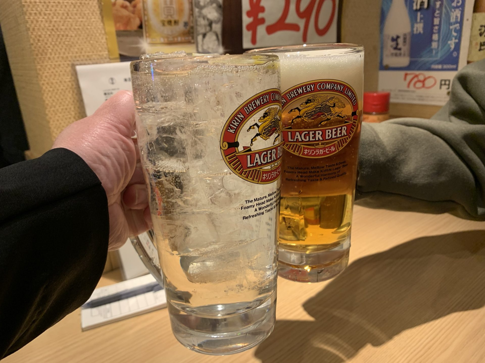 仕事終わりの一杯といえば、これ。「まずはこれで乾杯!」と、創業祭価格のチュウハイ(230円)を注文。