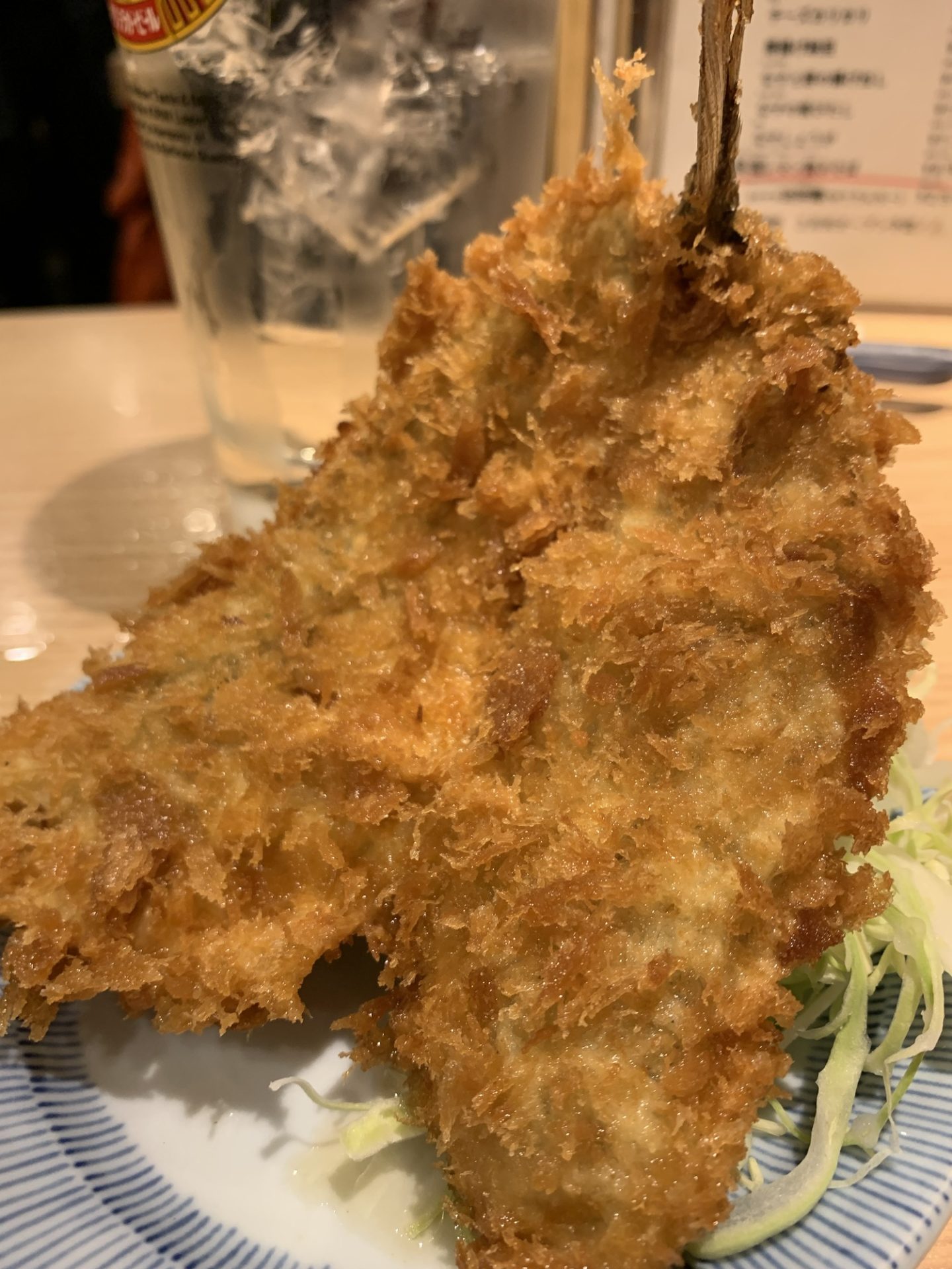 続いて登場したのは、ボリュームたっぷりのアジフライ。
