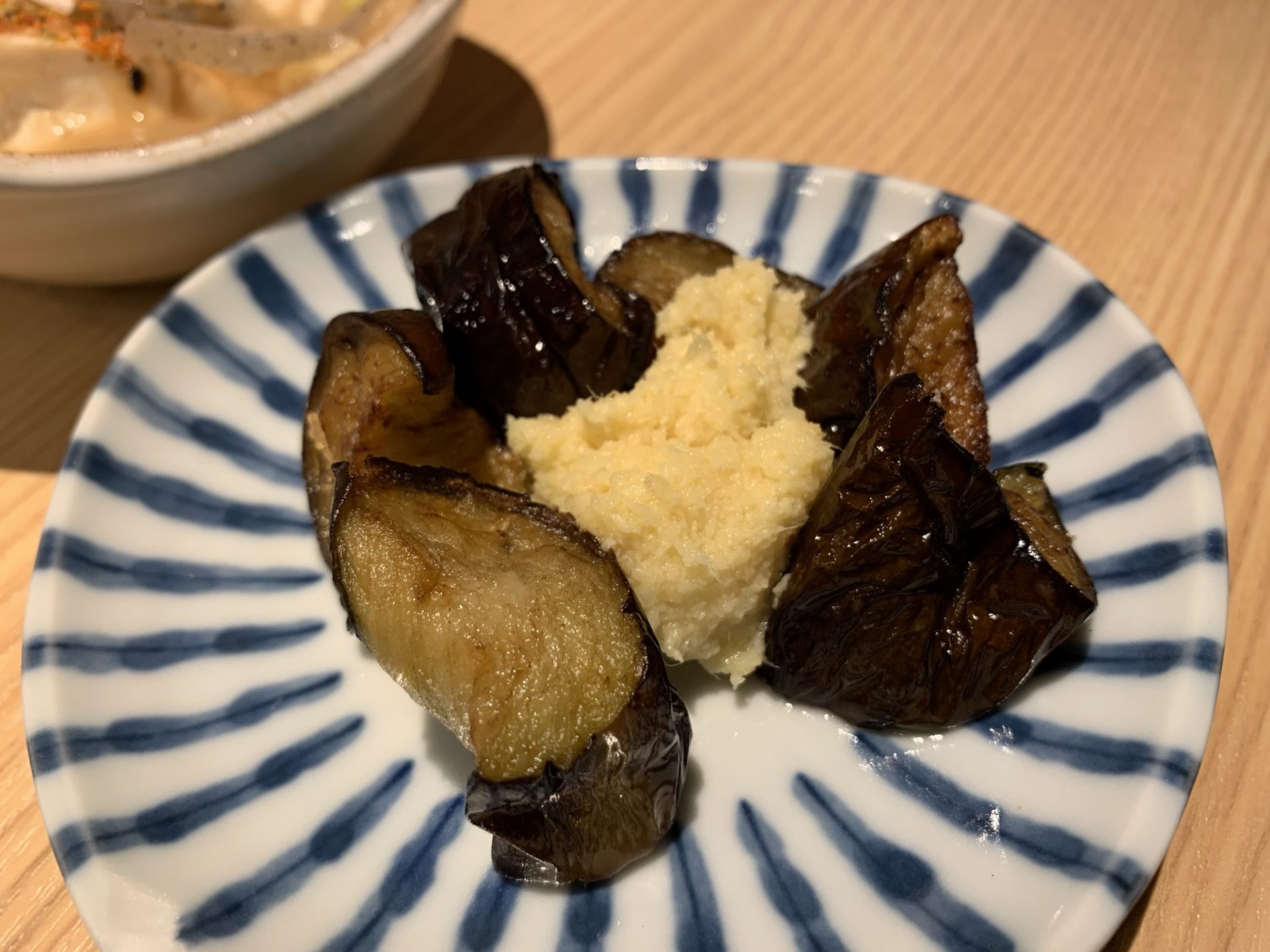 次に頼んだのは、なすしょうが。素揚げされた茄子の香ばしさと、たっぷりのおろし生姜が爽やかに口の中で弾けます。