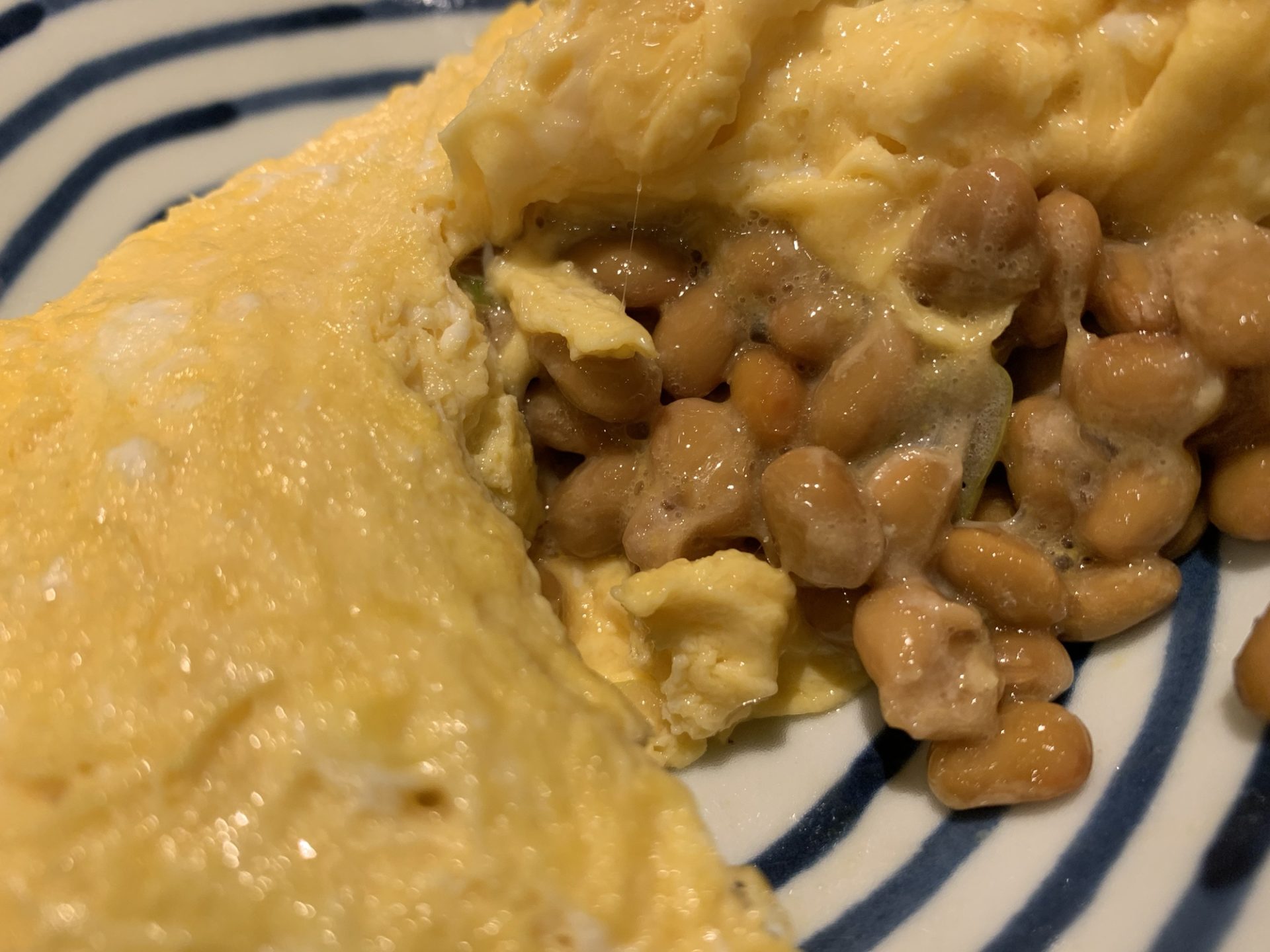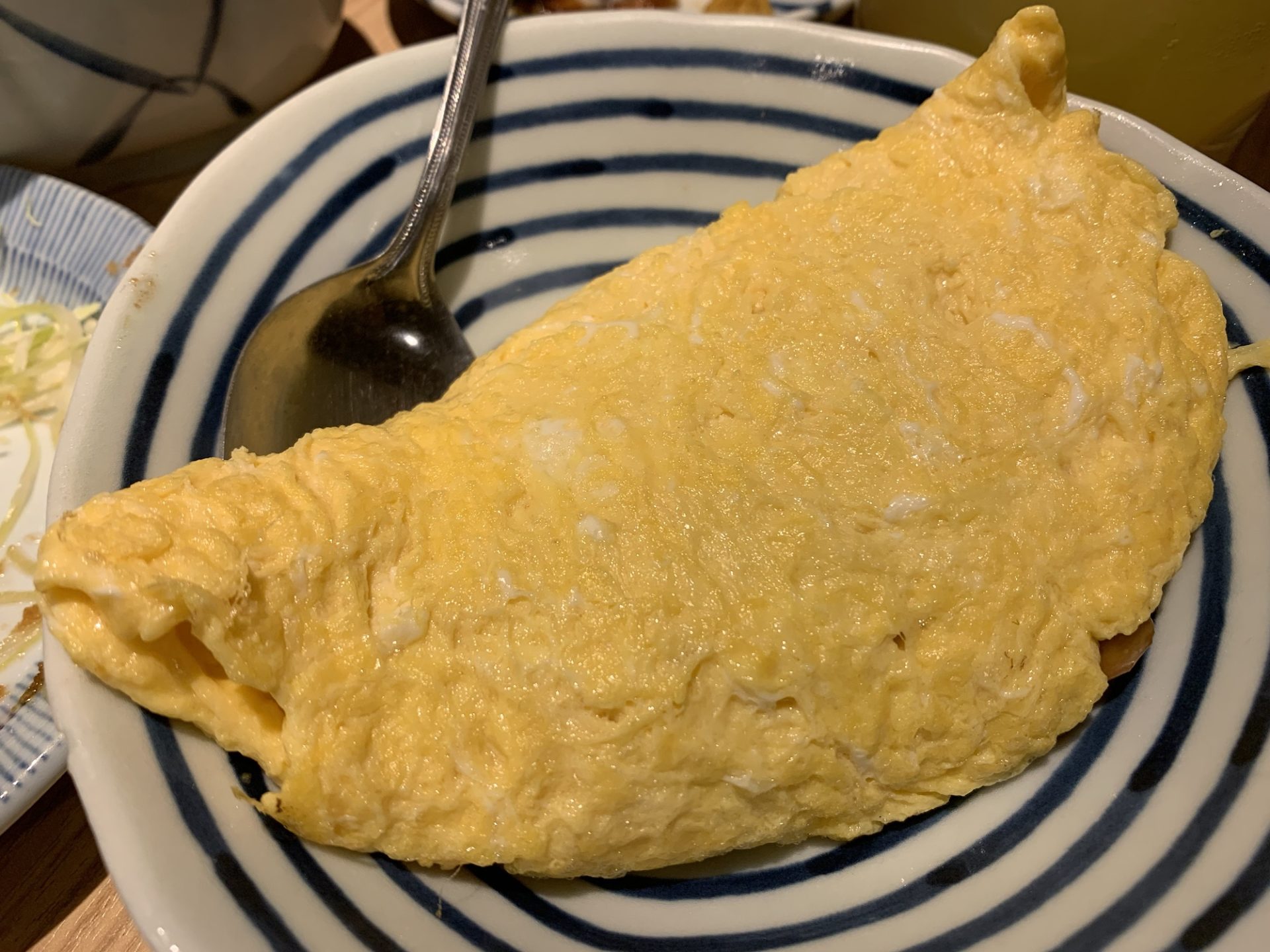 最後は大好物の納豆オムレツで締め。ふわふわの卵に包まれた納豆が、とろりと広がるこの一品は、やっぱり晩杯屋の看板メニュー。