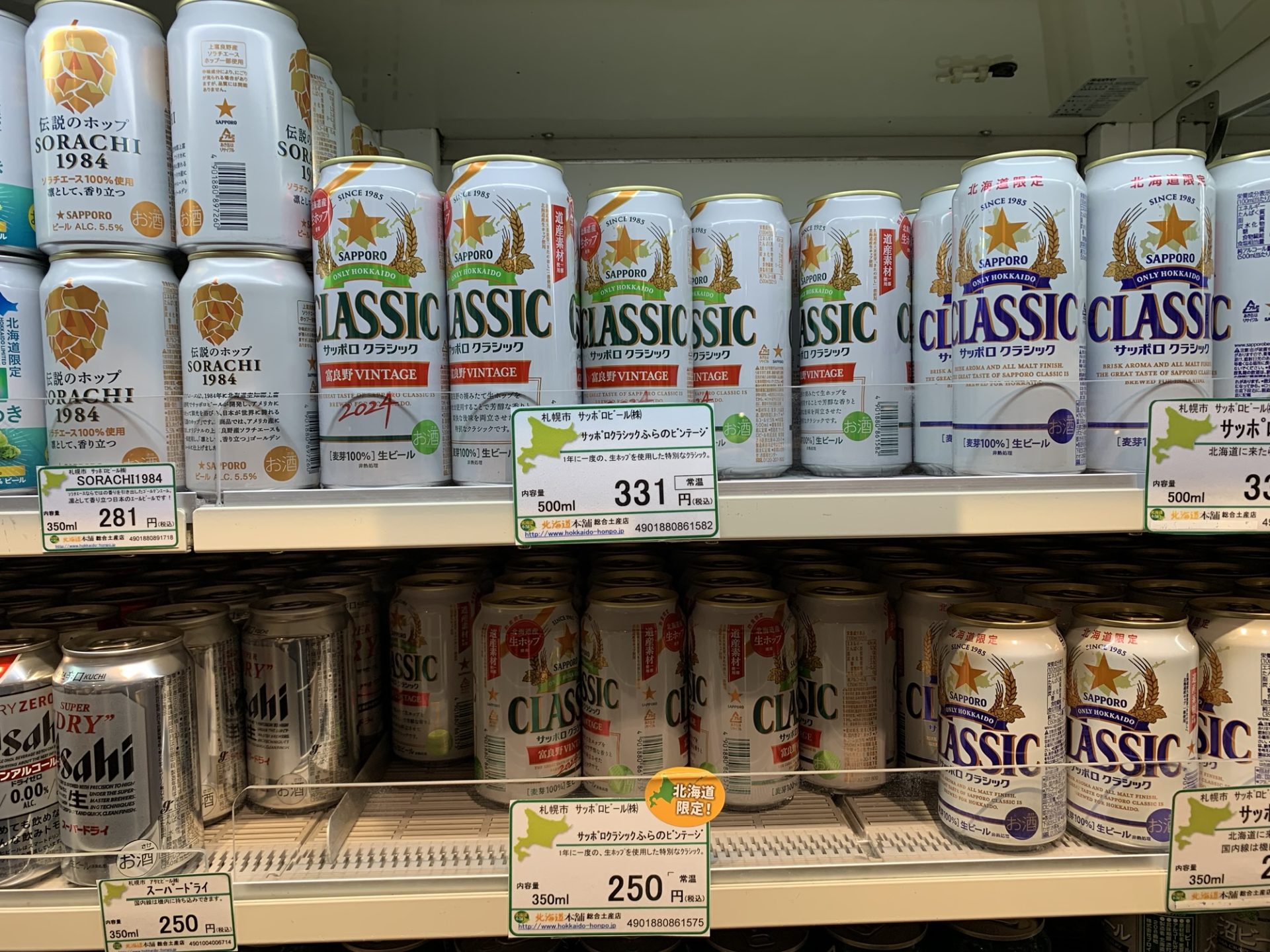新千歳空港内の「北海道本舗」で、北海道の美味しいものをたくさん手に入れることができ、大満足の時間を過ごしました。サッポロクラシック富良野ビンテージの爽やかな味わいは、旅の疲れを癒し、北海道の豊かな食文化を再認識させてくれました。次回の北海道旅行でも、ぜひ立ち寄りたいと思います。