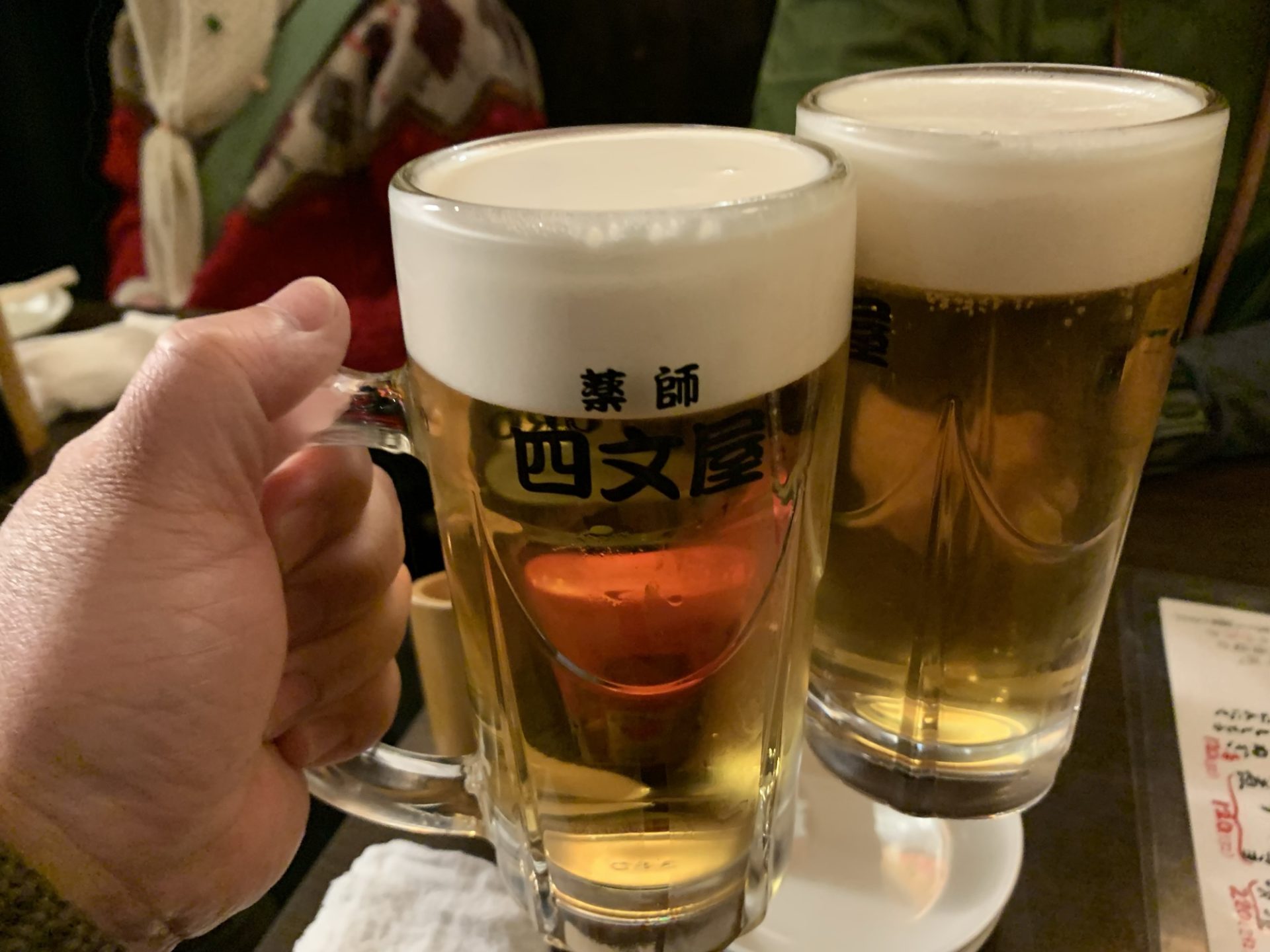 平日の夕方、三軒茶屋の四文屋を訪れました。店内に入ると、どこか懐かしさを感じるカジュアルな雰囲気が広がり、肩肘張らずに過ごせる空間が広がっています。席に着くと、まずは生ビール(550円)で乾杯。キンキンに冷えたビールが喉を潤し、仕事の疲れも一気に吹き飛びます。