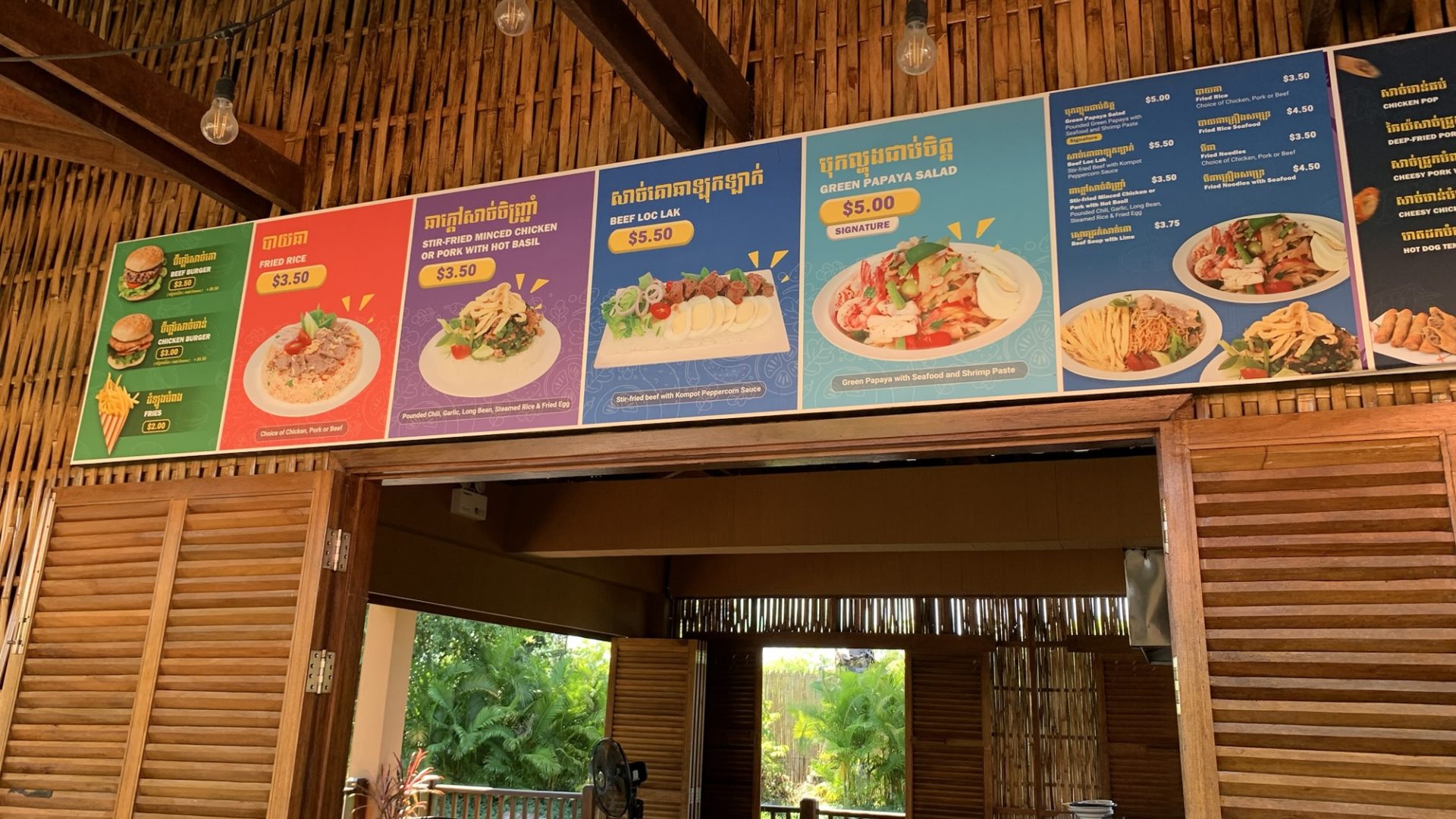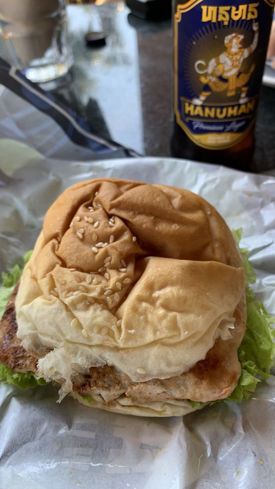 シェムリアップ郊外のCoco Cabanaは、冷えたビールとジューシーなチキンバーガーが楽しめる穴場ランチスポット。観光の合間にぜひ!