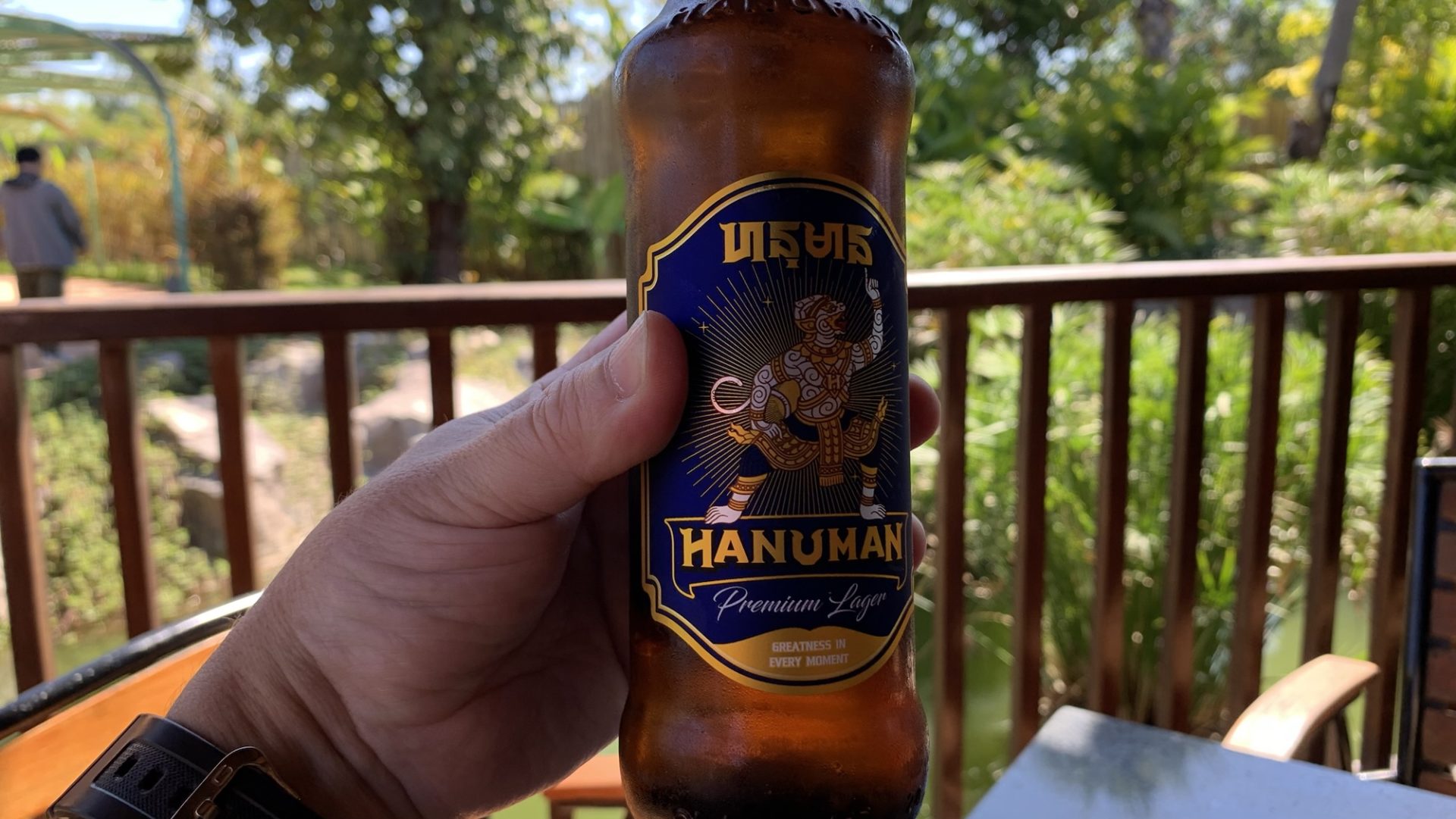 ランチタイムに訪れたCoco Cabana。まずは喉を潤したいと、地元産の「HANUMAN」瓶ビール(2ドル)をオーダーしました。冷えた瓶をそのまま手に取り、南国の空気の中でラッパ飲み――これが旅の醍醐味です。