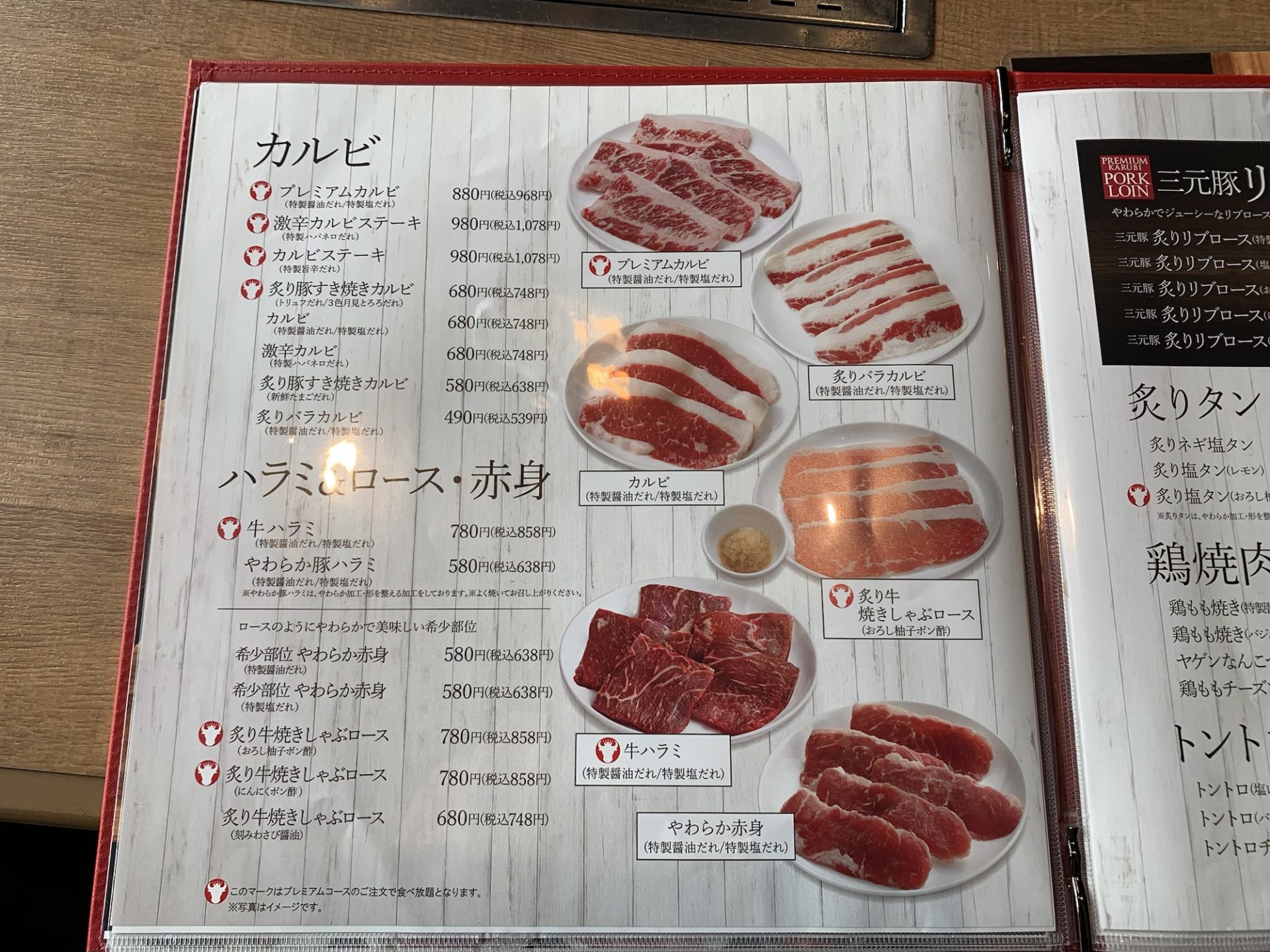 特徴:焼肉食べ放題(100分制)、熟成肉、デザートビュッフェあり、ファミリーに人気、テーブル席多数、タッチパネル注文、ゆったり座れるソファ席あり、清潔感のある店内