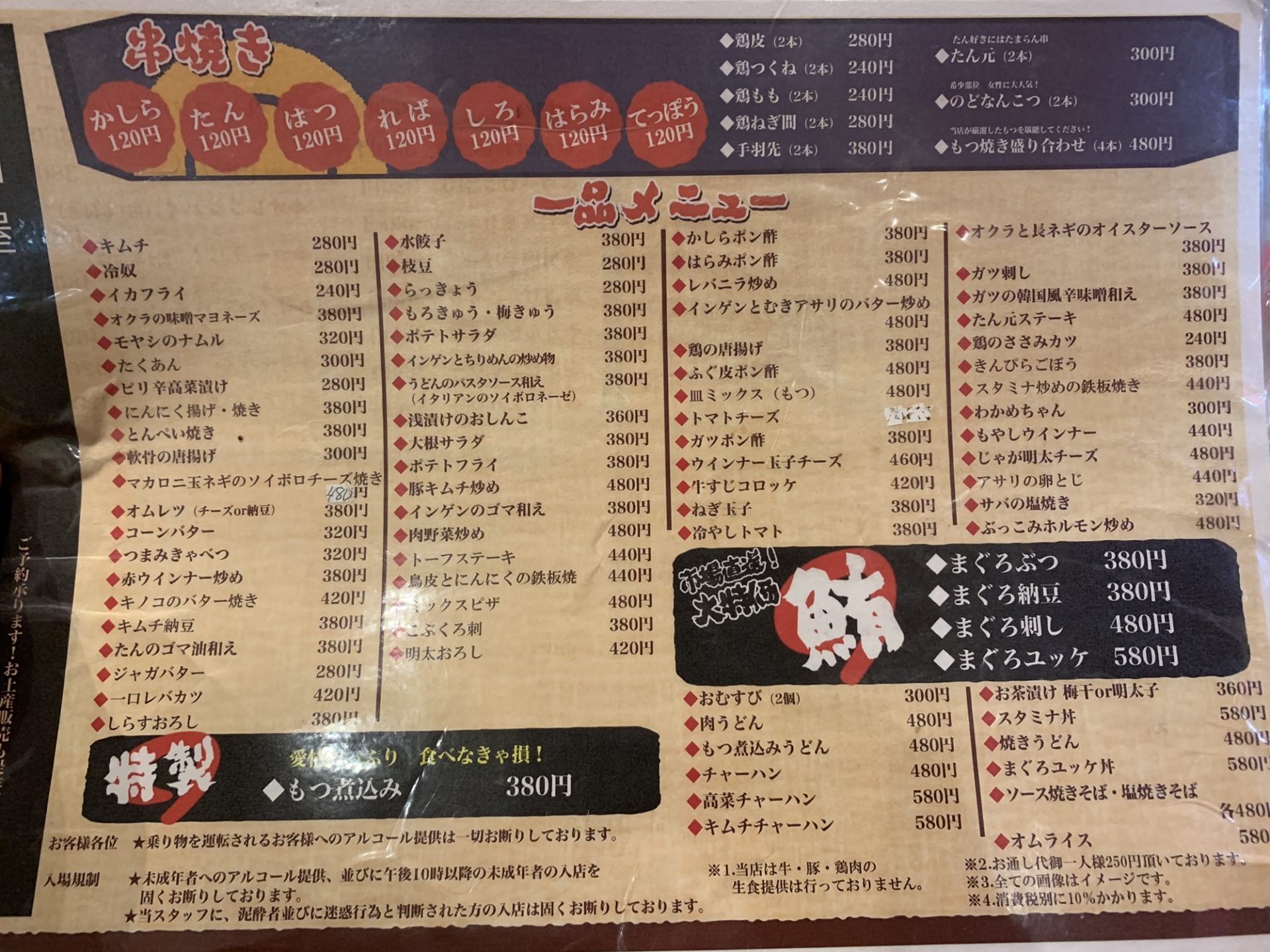 特徴:昭和の雰囲気漂う店内、リーズナブルな価格、串焼きや煮込みなどの下町メニューが豊富