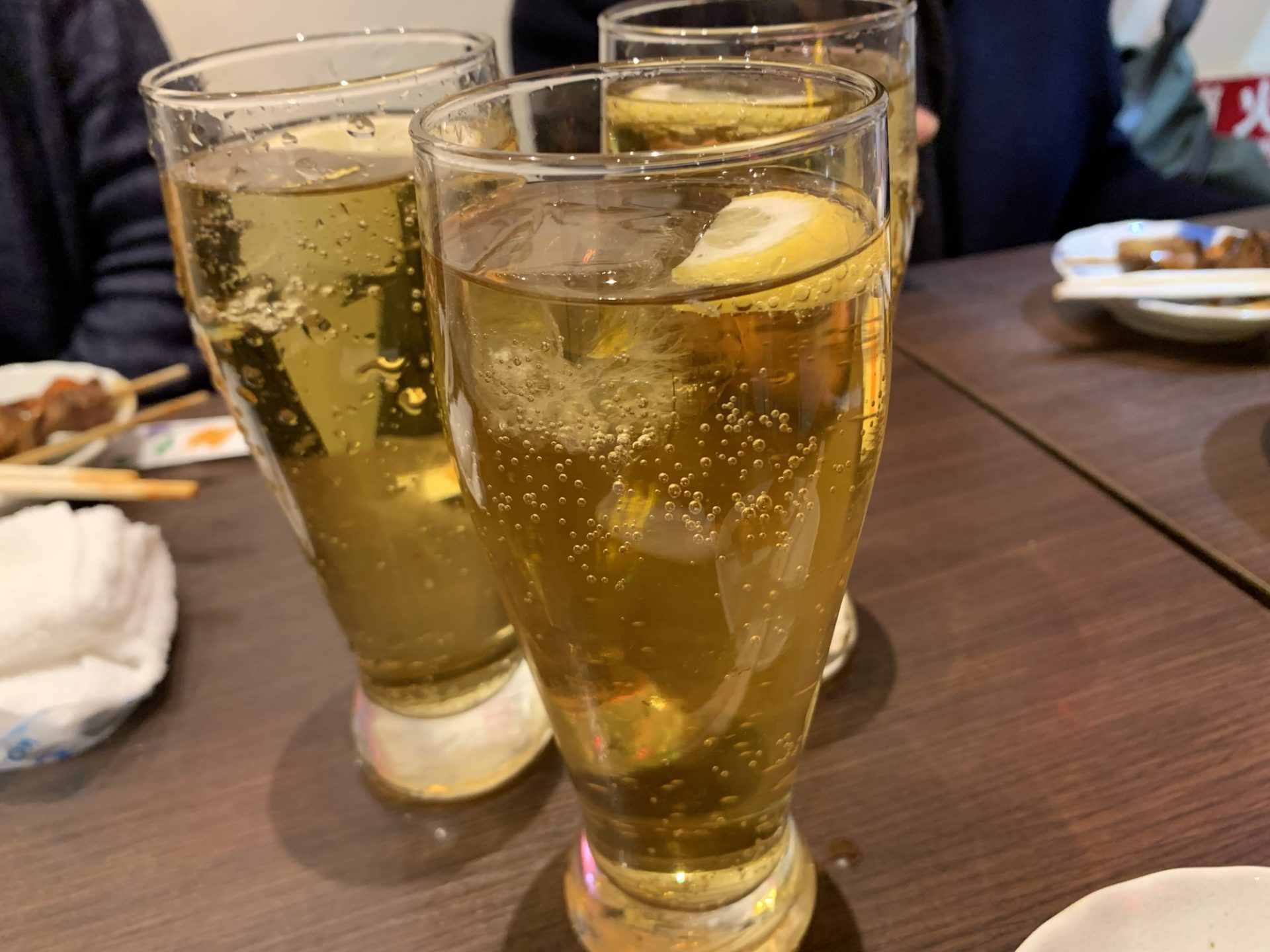 ビールの次は、下町ハイボールを注文。炭酸の効いたハイボールは、すっきりとした味わいで、串焼きとの相性も良好。レモンの風味がアクセントとなり、口の中をさっぱりとさせてくれます。これぞ、下町の定番ドリンク!
