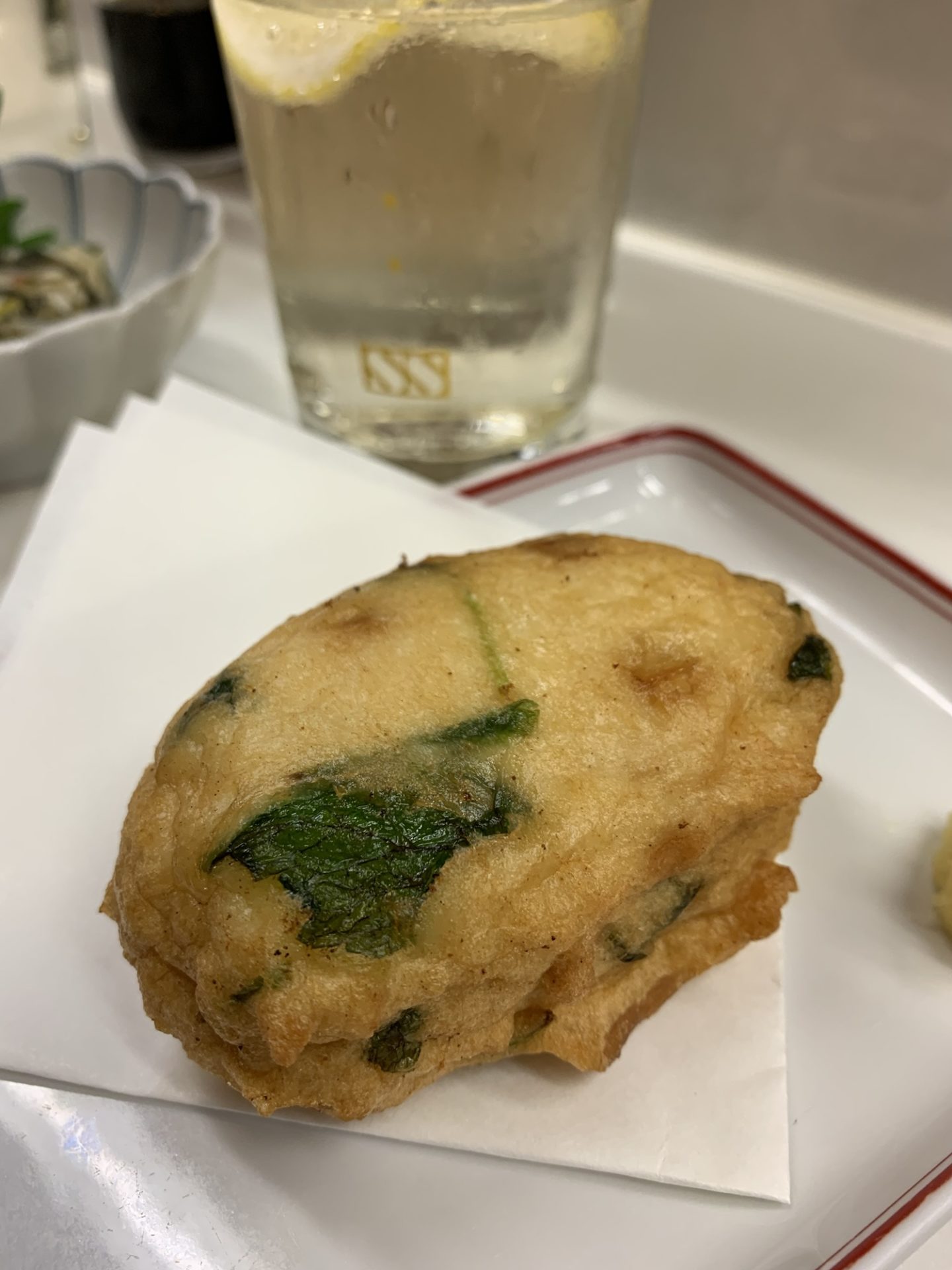 続いては「イワシ刺身」。見るからに新鮮な身がキラリと光っていて、思わず目も舌も奪われます。程よく脂がのっていて、噛むほどにイワシの旨みがじわじわ広がる…。柚子とわさびがアクセントについついあと引く味わいです。