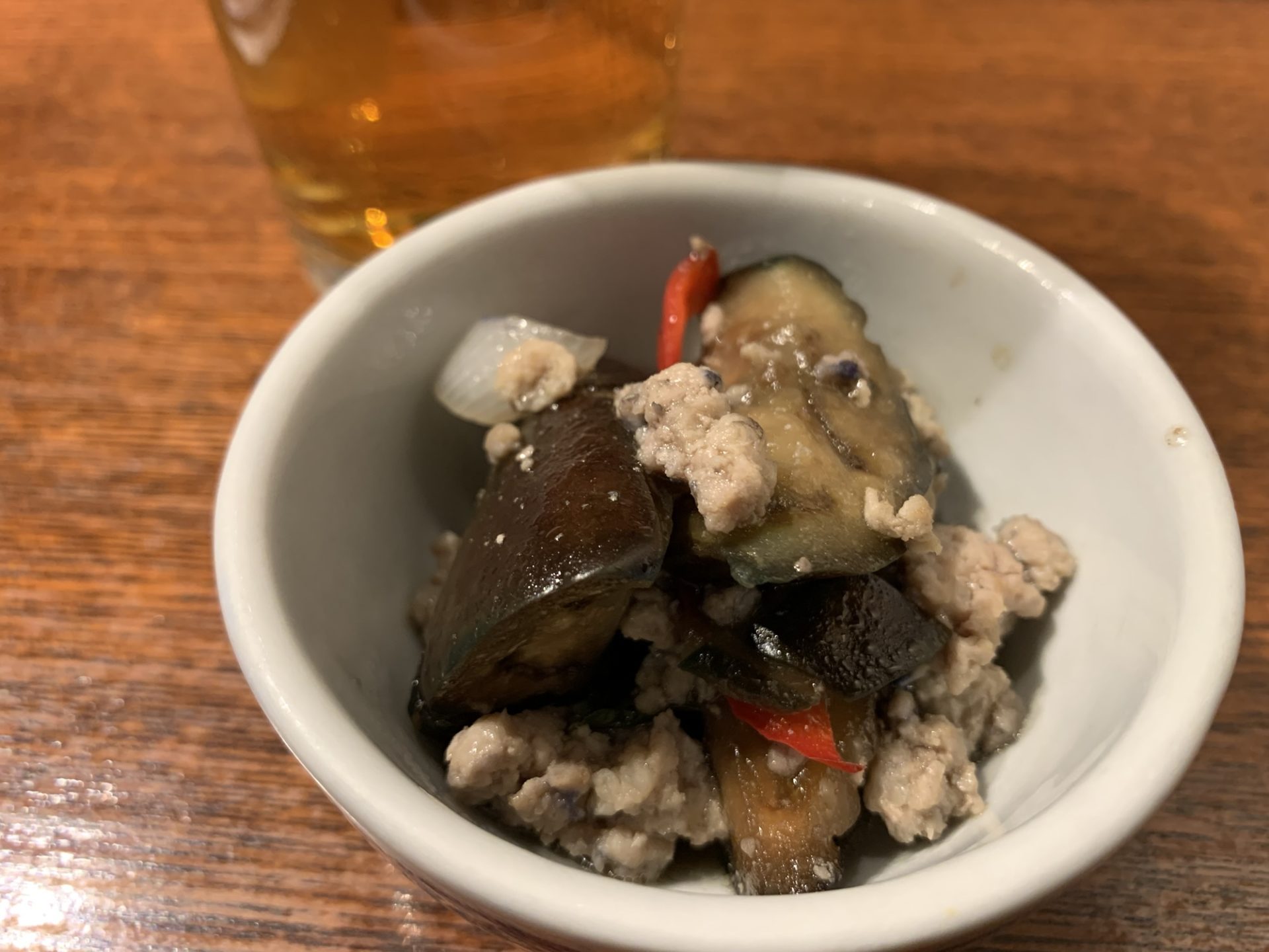 お通し:ナスとひき肉の和え物