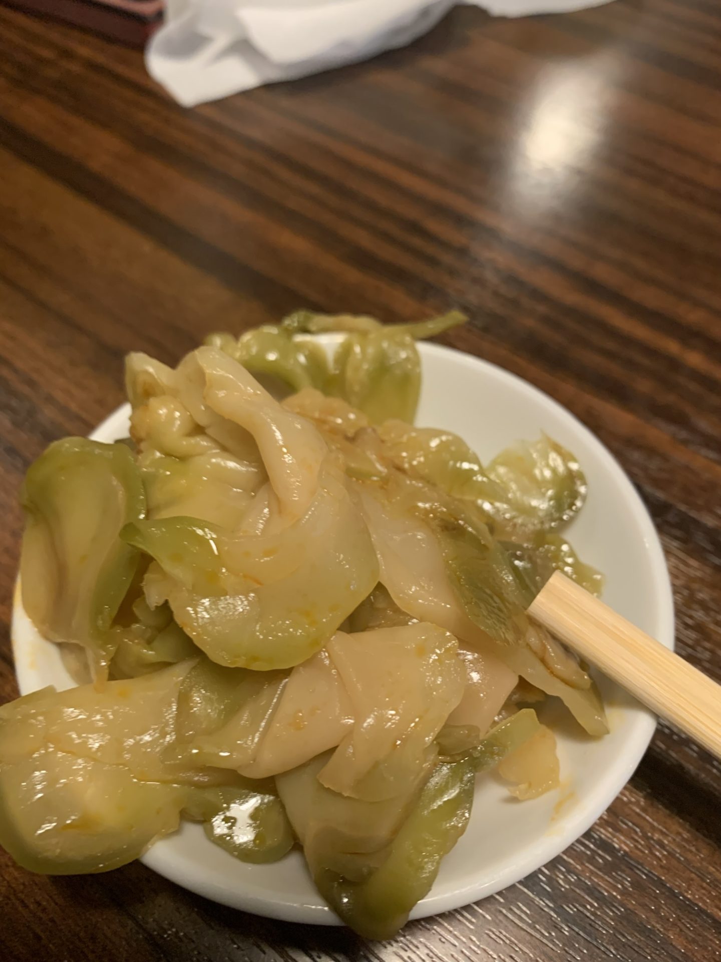 こちらの名物が食べ放題のザーサイ。これがまたクセになる美味しさ。シャキシャキとした食感に、ピリッとした辛味と程よい塩気が絶妙で、ビールのお供に最高です。箸が止まらず、ついついおかわりしてしまいました。