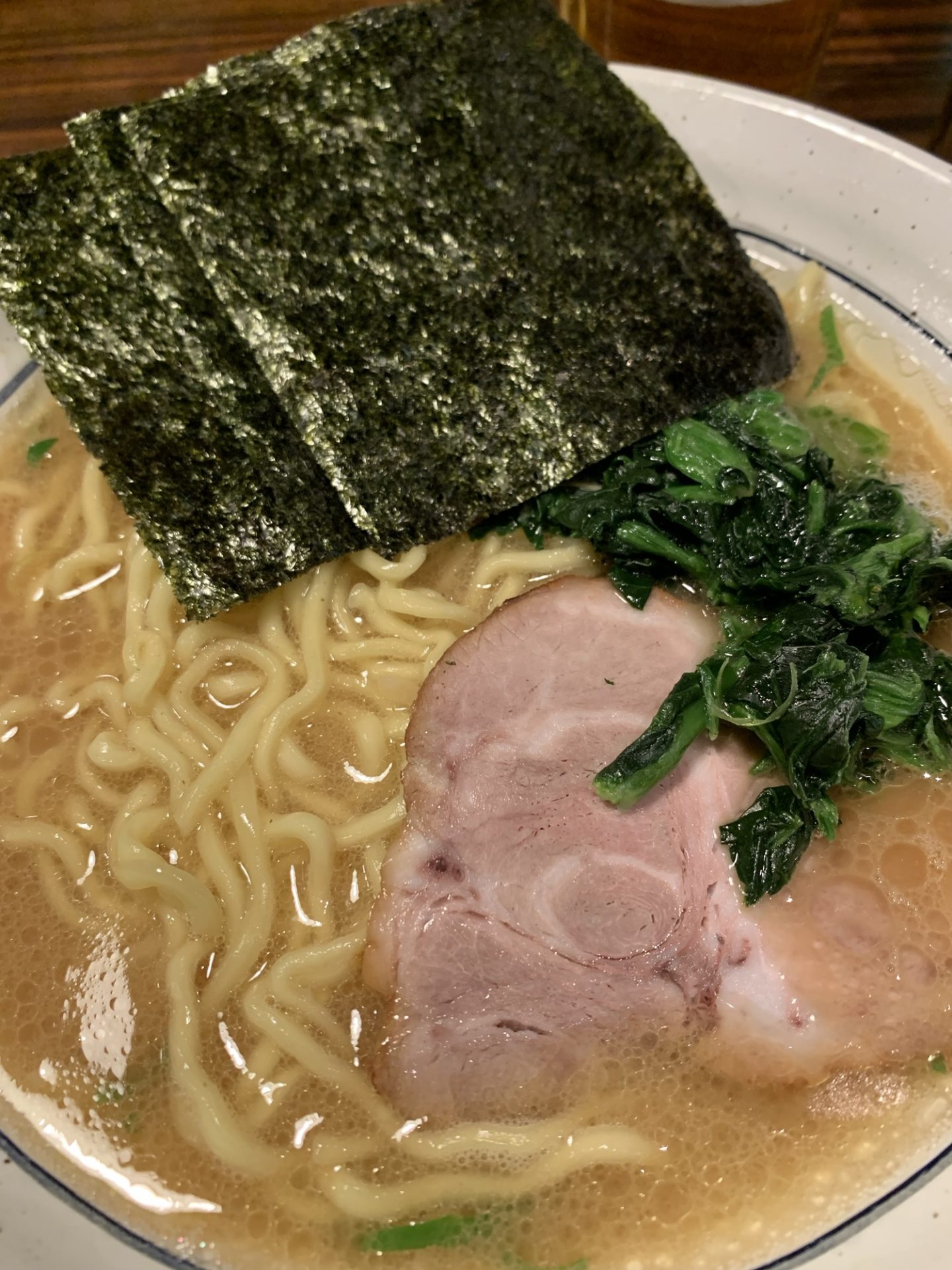 最後の一杯として選んだのは、王道のラーメン。クリーミーでコクのあるスープに、細麺がよく絡みます。トッピングのチャーシューや海苔も絶品で、横濱家の真髄を感じる一杯でした。