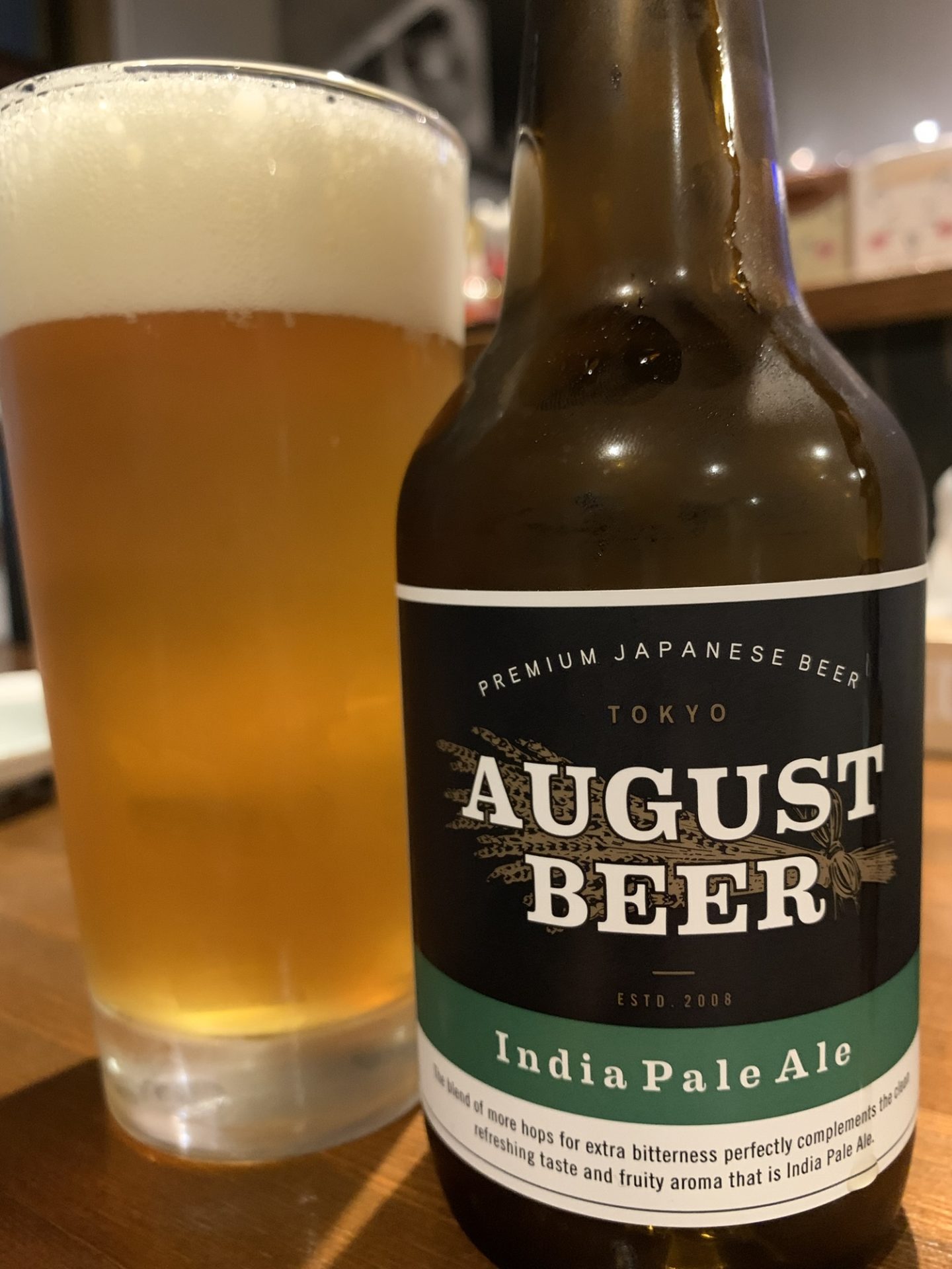 次にいただいたのは、AUGUST BEERのIPA。ホップの香りと苦味がしっかりと感じられ、肉豆腐の甘さとの相性も抜群です。クラフトビール好きにはたまらない一杯です。