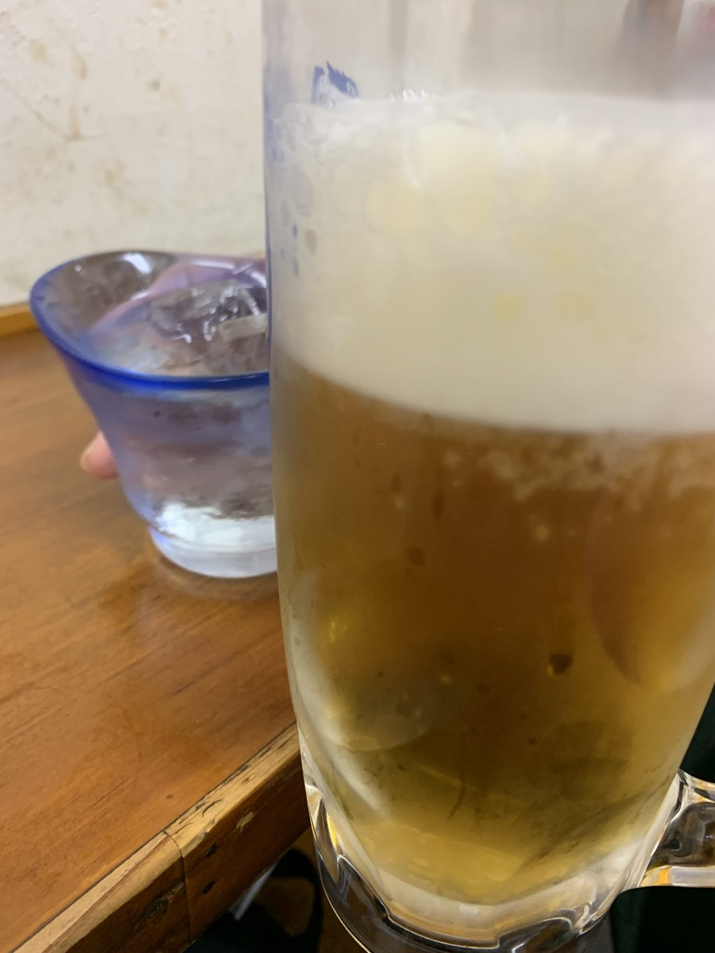 仕事終わりにふと、あの味を思い出して。今日は友人と2人、大井町の東小路飲食店街にある立ち飲み中華「臚雷亭」に立ち寄りました。活気のある店内に足を踏み入れると、すでにたくさんのお客さんが楽しそうにグラスを傾けています。さっそく、まずは喉を潤す一杯を。