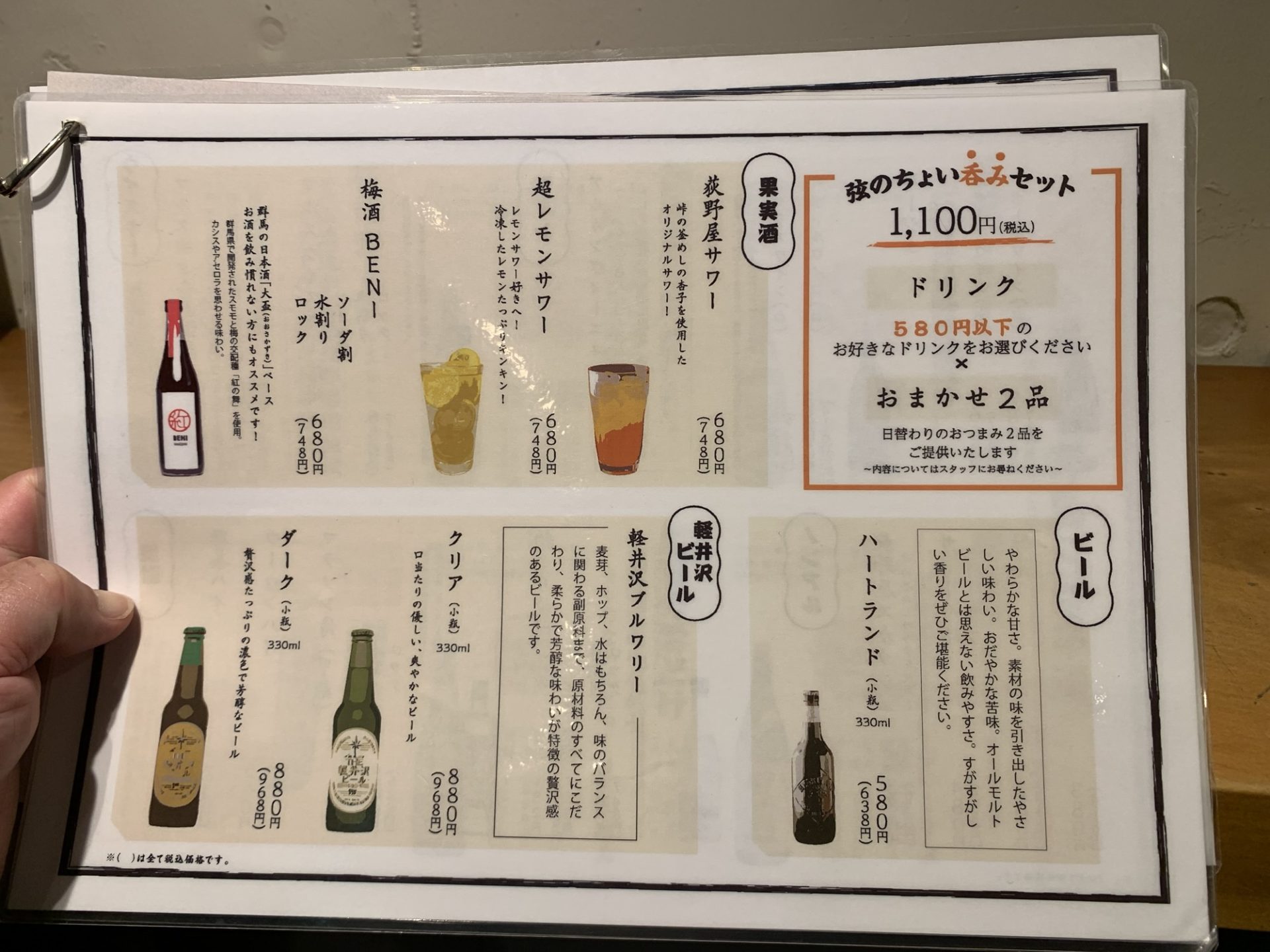 ハートランド小瓶と「弦のちょい呑みセット」1,100円(ドリンク+おまかせ2品)