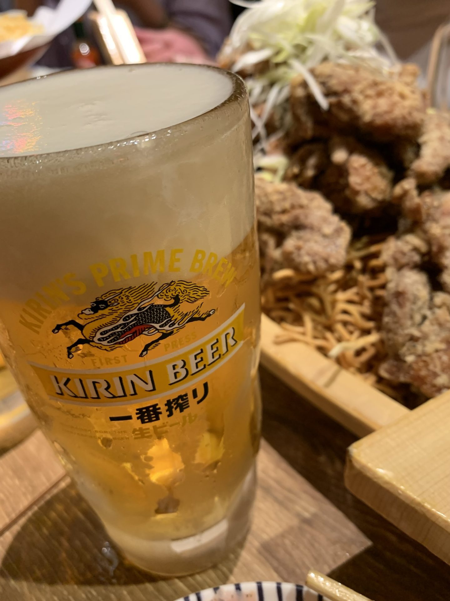 大学時代からの先輩とのプチ宴会、乾杯の一杯目はやっぱり生ビール。グラスの泡がキラキラと揺れて、「よっしゃ、今日も楽しもう!」という気分に自然となります。仕事を終え、駅からちょっと歩いてビル9階へ上がると、カジュアルな居酒屋バルの空気。まずは軽く喉を潤しつつ、宴のスタートです。