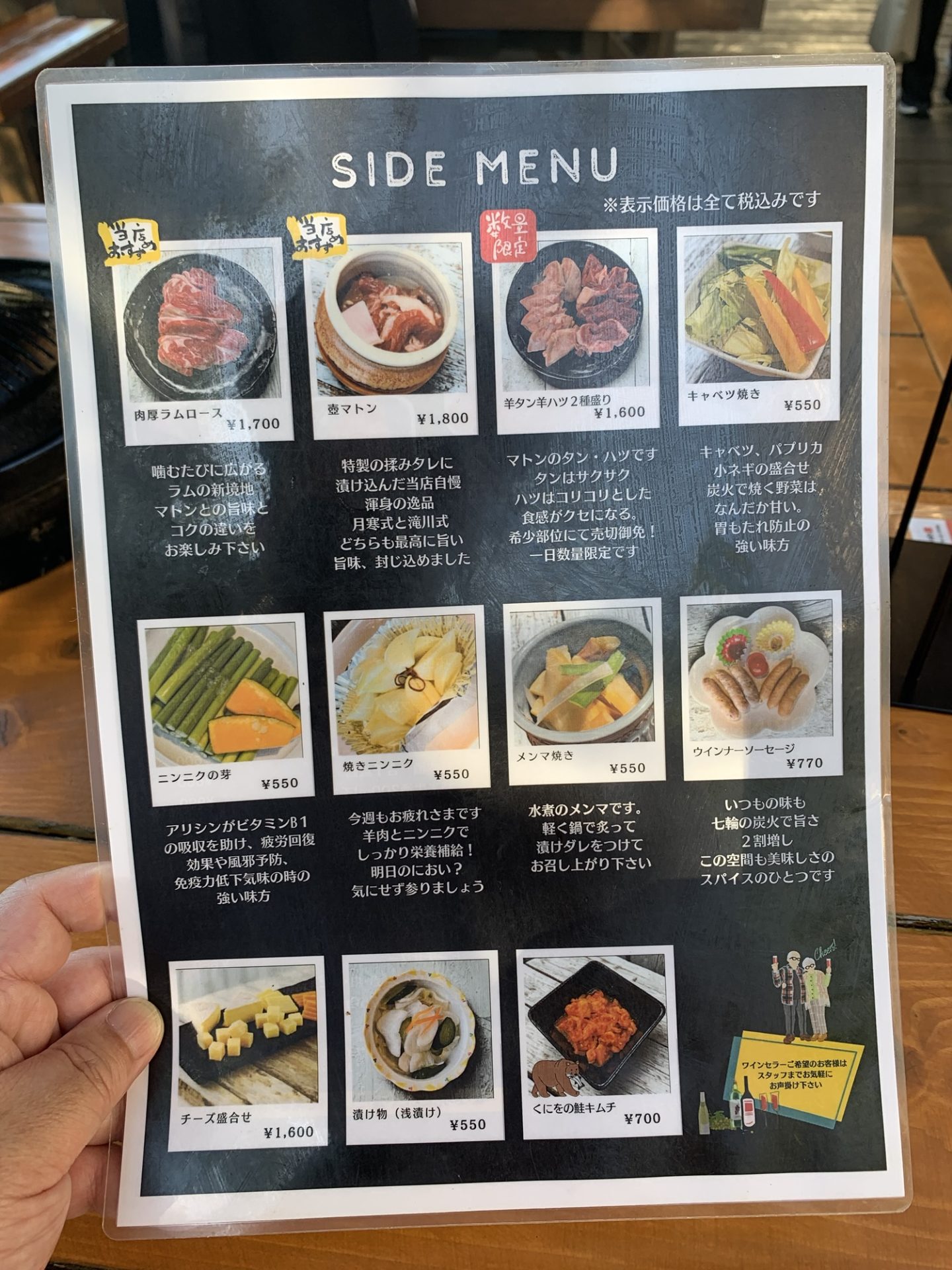 メインに選んだのはこのセット。マトン肉が適度な厚みで、炭火で焼くと香ばしさが立ち上がります。野菜が添えられ、おにぎり2個付きという構成も嬉しいポイント。義兄が焼き担当で、“こんがり”のタイミングを見極めてくれたので、肉の甘みと脂の旨みがじわっと口に広がりました。