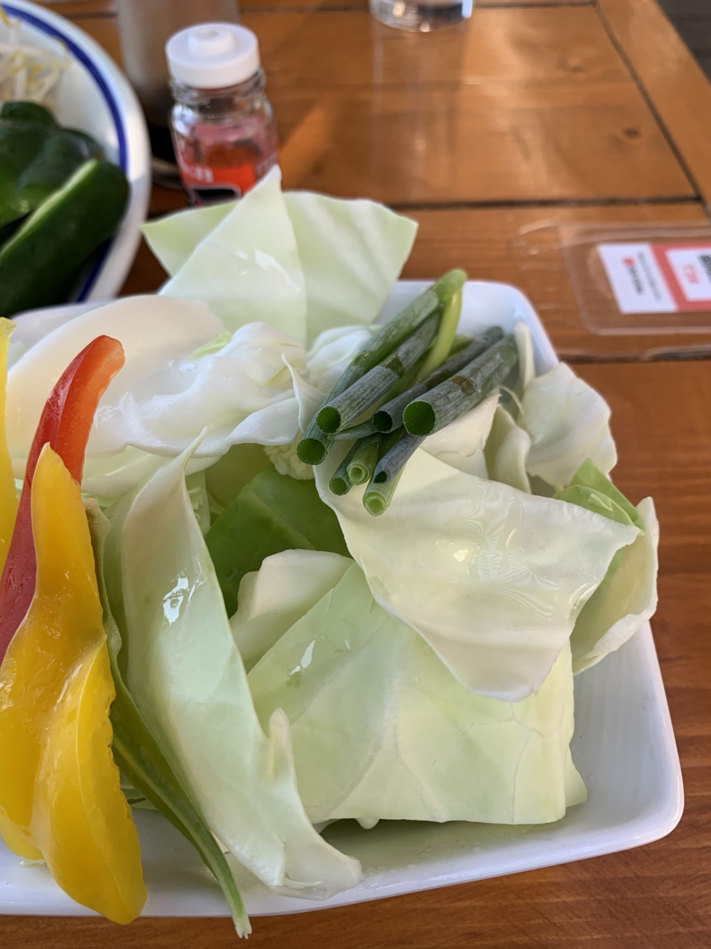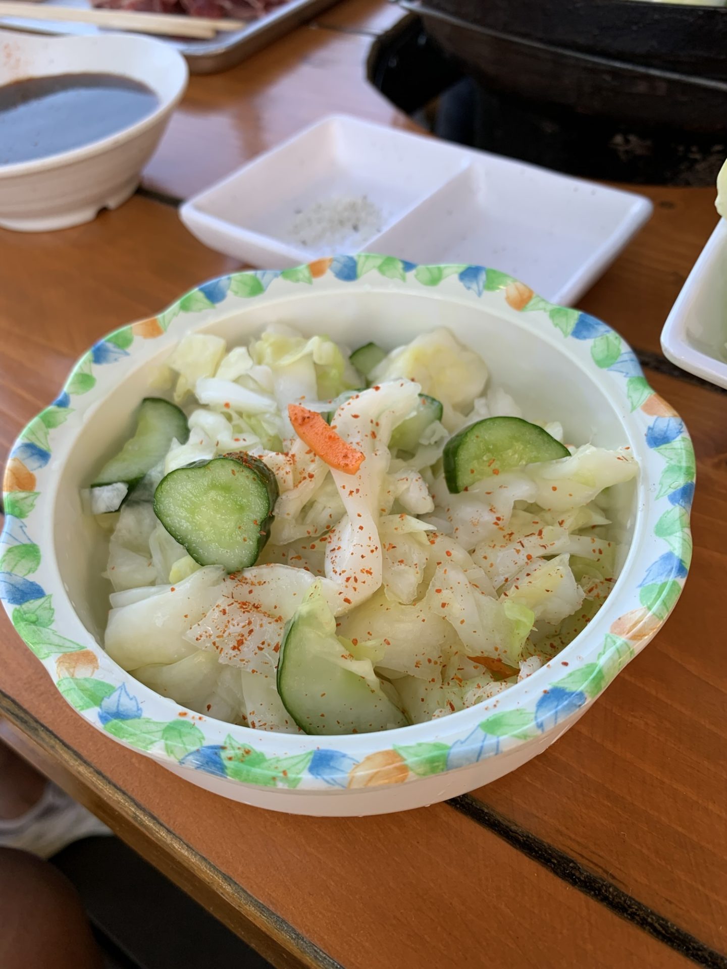 最後に頼んだ浅漬けの漬物。塩加減控えめで、食肉の後に“さっぱり”と口を整えるには理想的。テラス席で風を感じながら、肉・野菜・漬物・ビールという“昼飲み”のベーシック構成が完成しました。