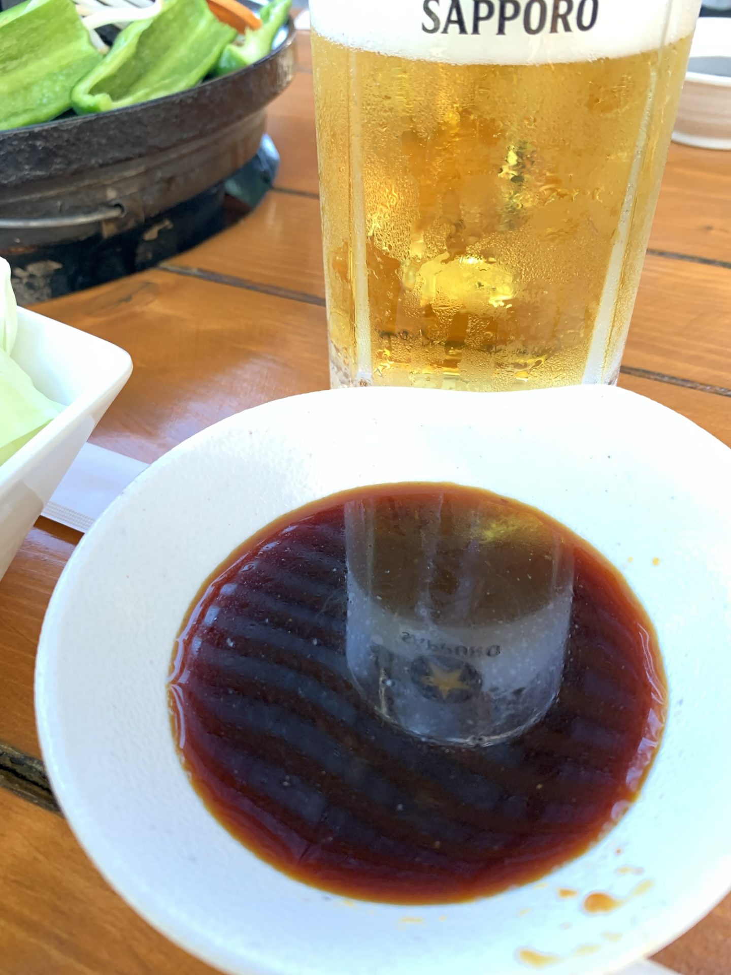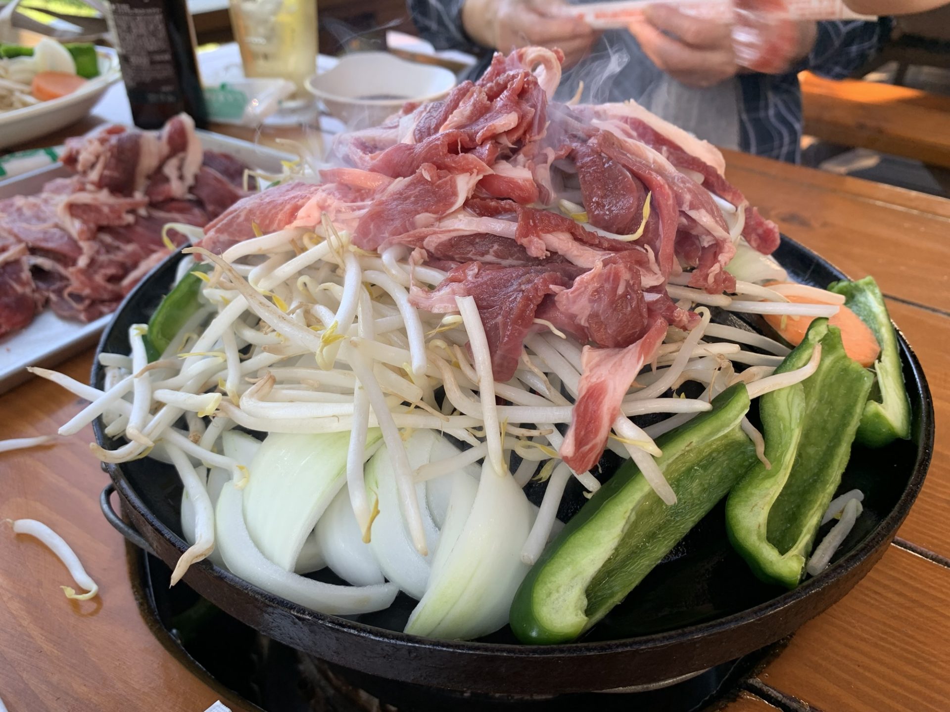 休日昼下がり、4人で訪れたこの店。まずは中生ビールで乾杯。コクとキレのバランスが良く、ジンギスカンを待つ間の“ぷはっ”とする瞬間にぴったりです。緑の木々のもと、牧場の空気を感じながらの一杯は格別でした。