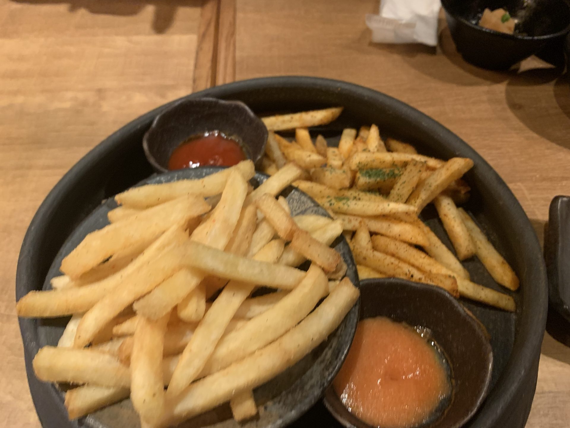 ポテトフライ(プレーンと青のり付き。ケチャップ2種類で)