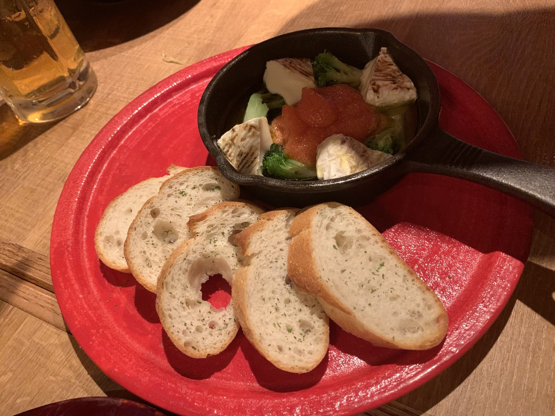 最後に登場したアヒージョは、明太子のピリッとした味わいにチーズのまろやかさが合わさった逸品。バゲットにたっぷりのオイルと具材をのせて、熱々をかぶりつく幸せ感は格別です。ビールとの相性も抜群で、シメにふさわしい満足度でした。