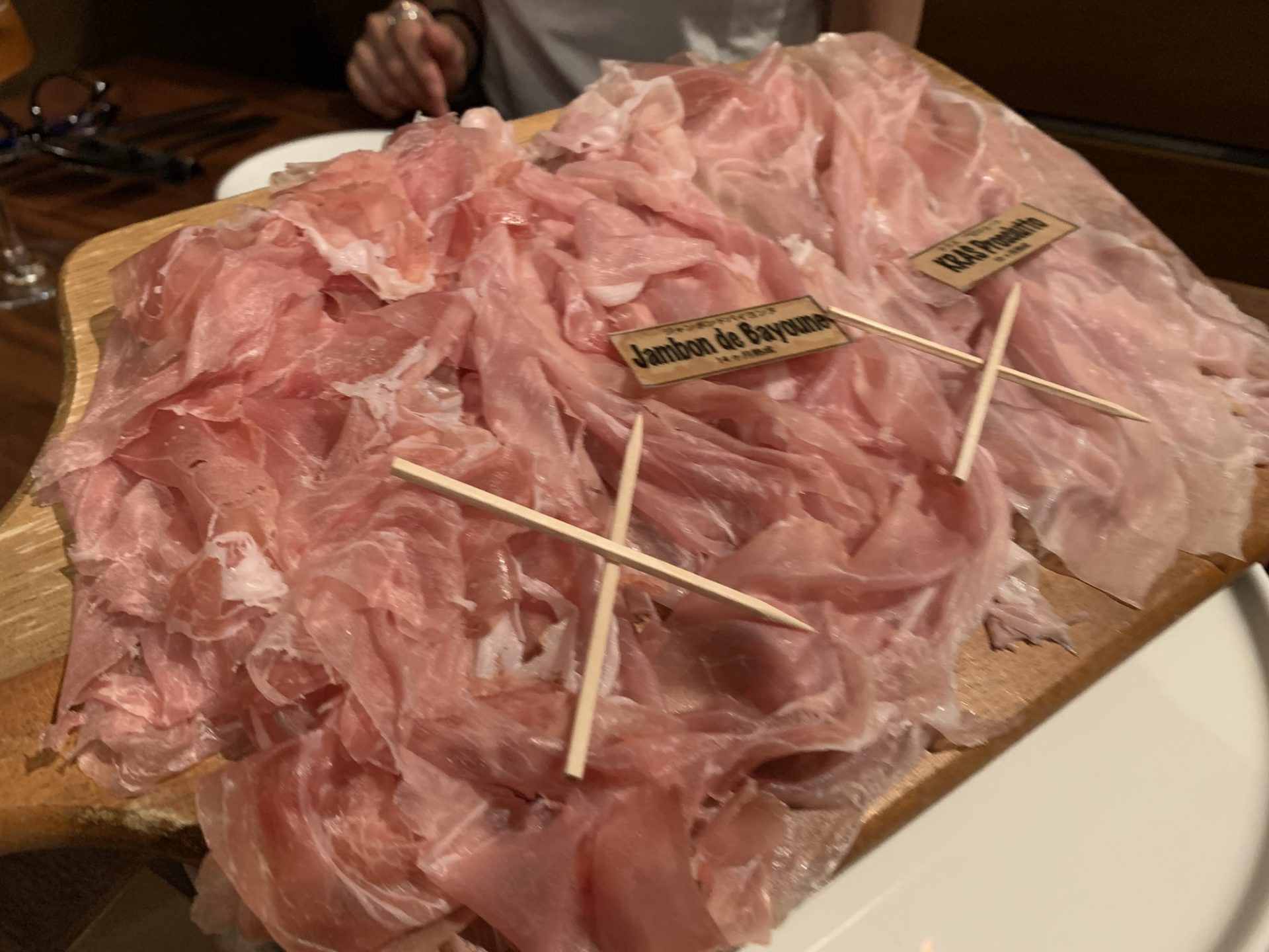 お酒に合うおつまみの定番として、生ハムの盛り合わせは欠かせません。スライサーで切りたての生ハムは、塩気がちょうどよく、脂の甘みも豊か。口に入れたときのとろけるような食感が最高です。