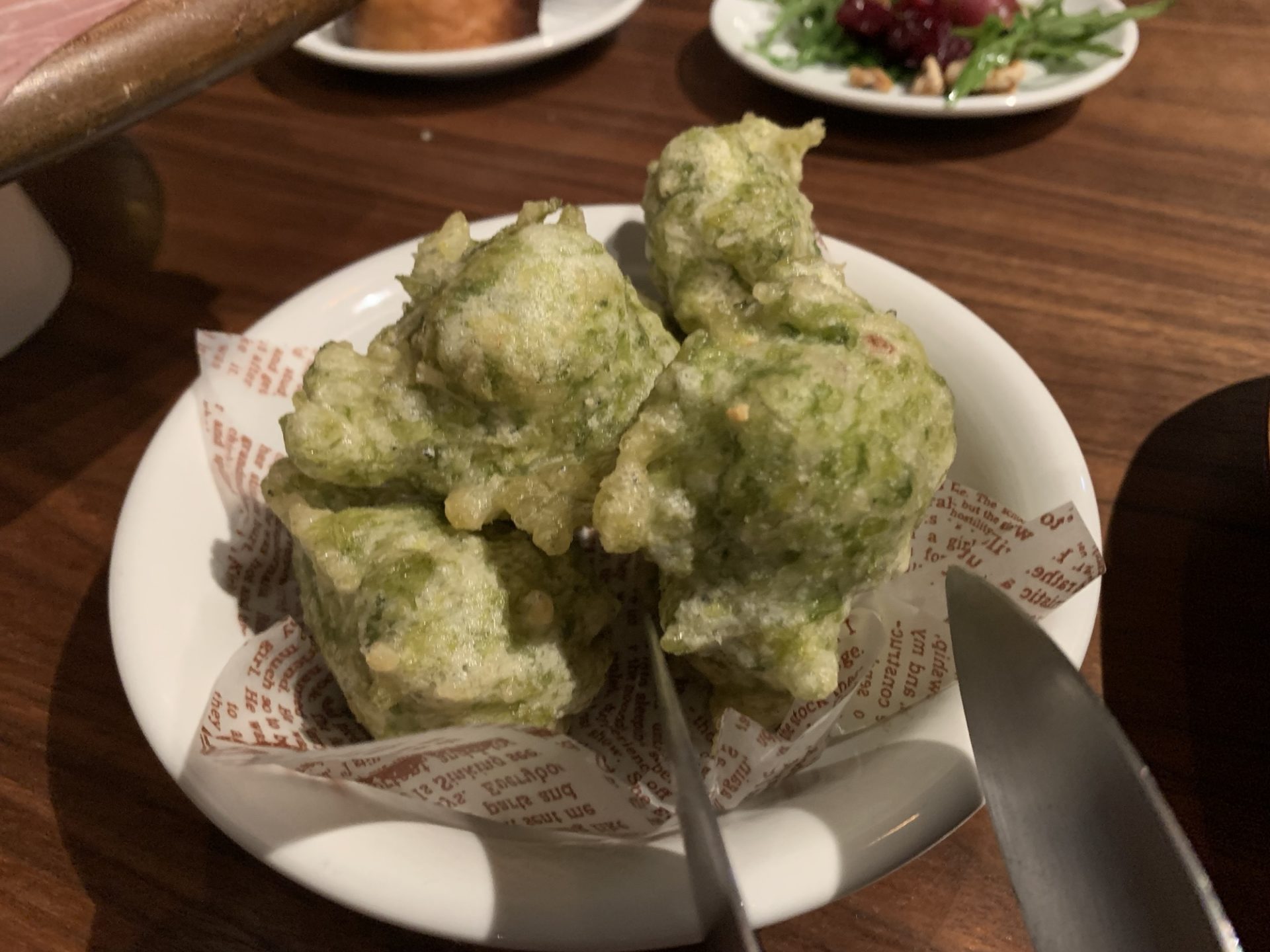 魚介の旨みと青海苔の香りがほんのり漂うイタリアンな一皿。ホタルイカのもちもち感と、ゼッポリーニのふんわり感がマッチして、ワインと合わせてもよし、ビールの後でもよし。