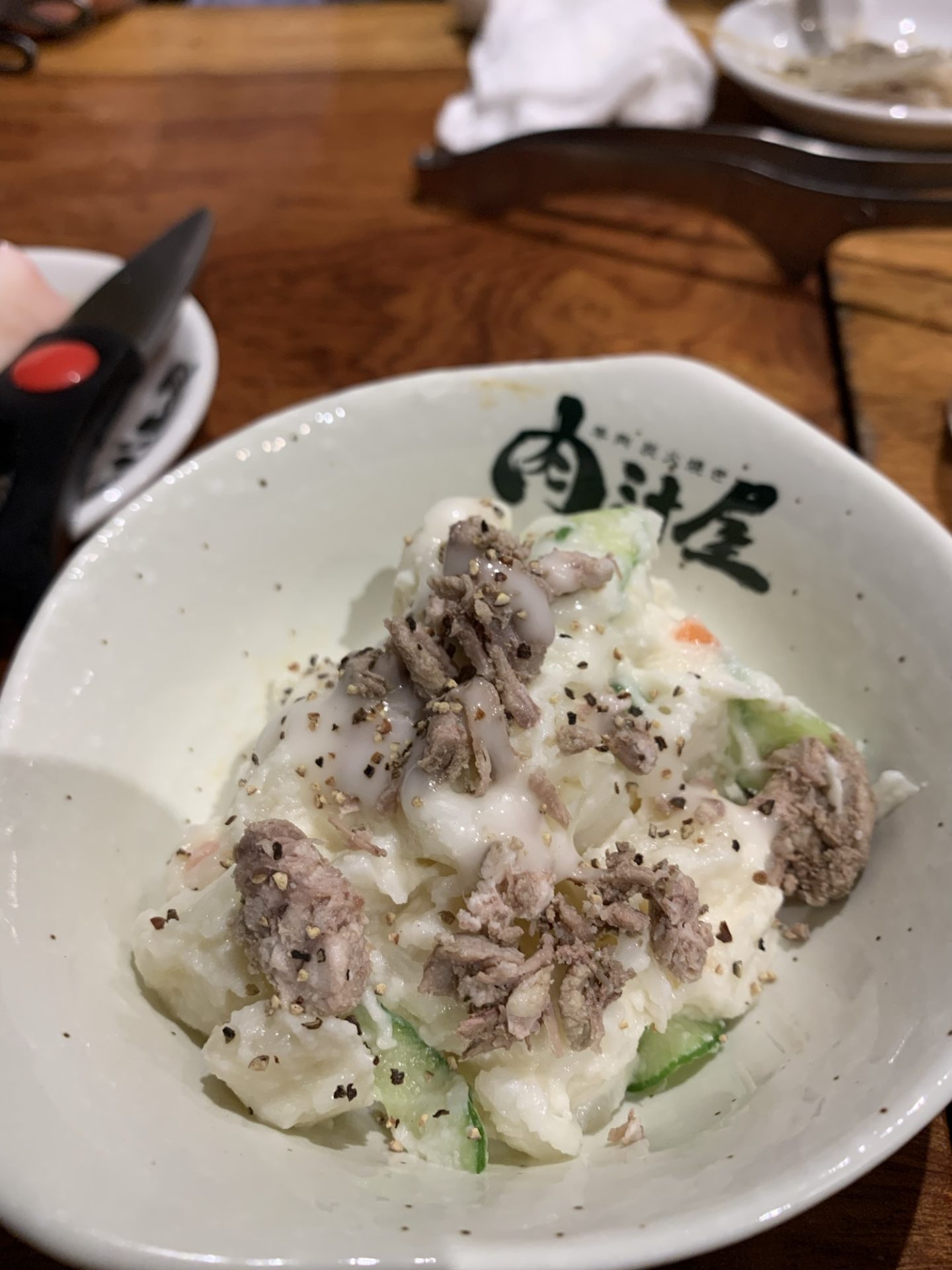 ラムをたっぷり食べたあとに、ほっと落ち着きたくて頼んだのがラムのポテトサラダ。ラムの風味がほのかに感じられ、クリーミーで優しい味わい。箸休めにも、おつまみにもぴったり。