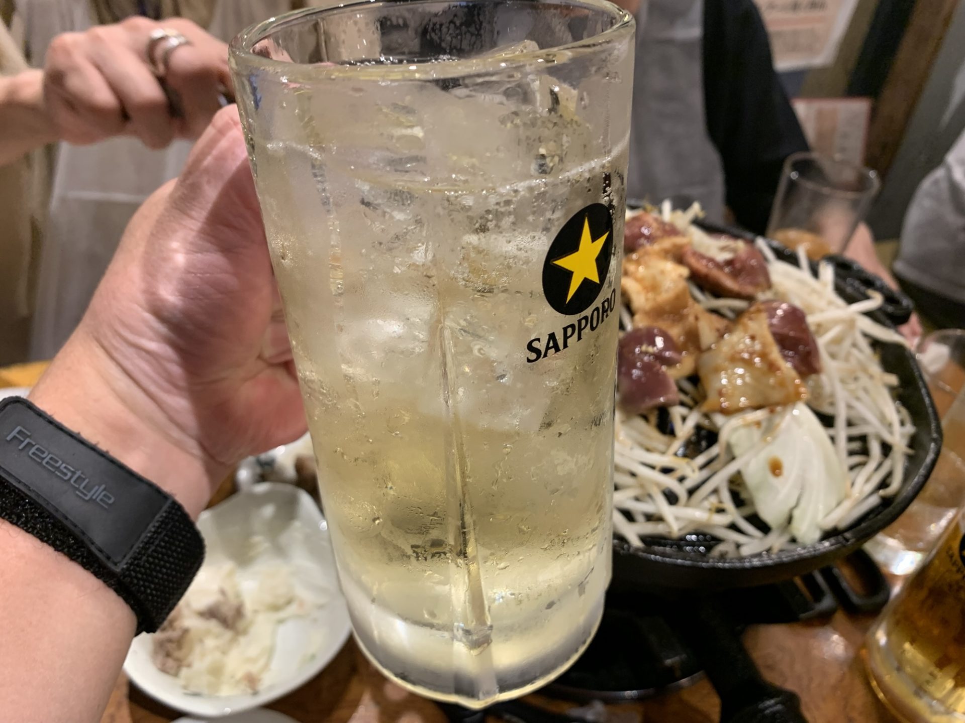 ビールの後は、スッと来る軽やかなデュワーズのハイボールにチェンジ。ラムの脂っぽさをさっぱり流してくれる、まさに相棒のような一本です。
