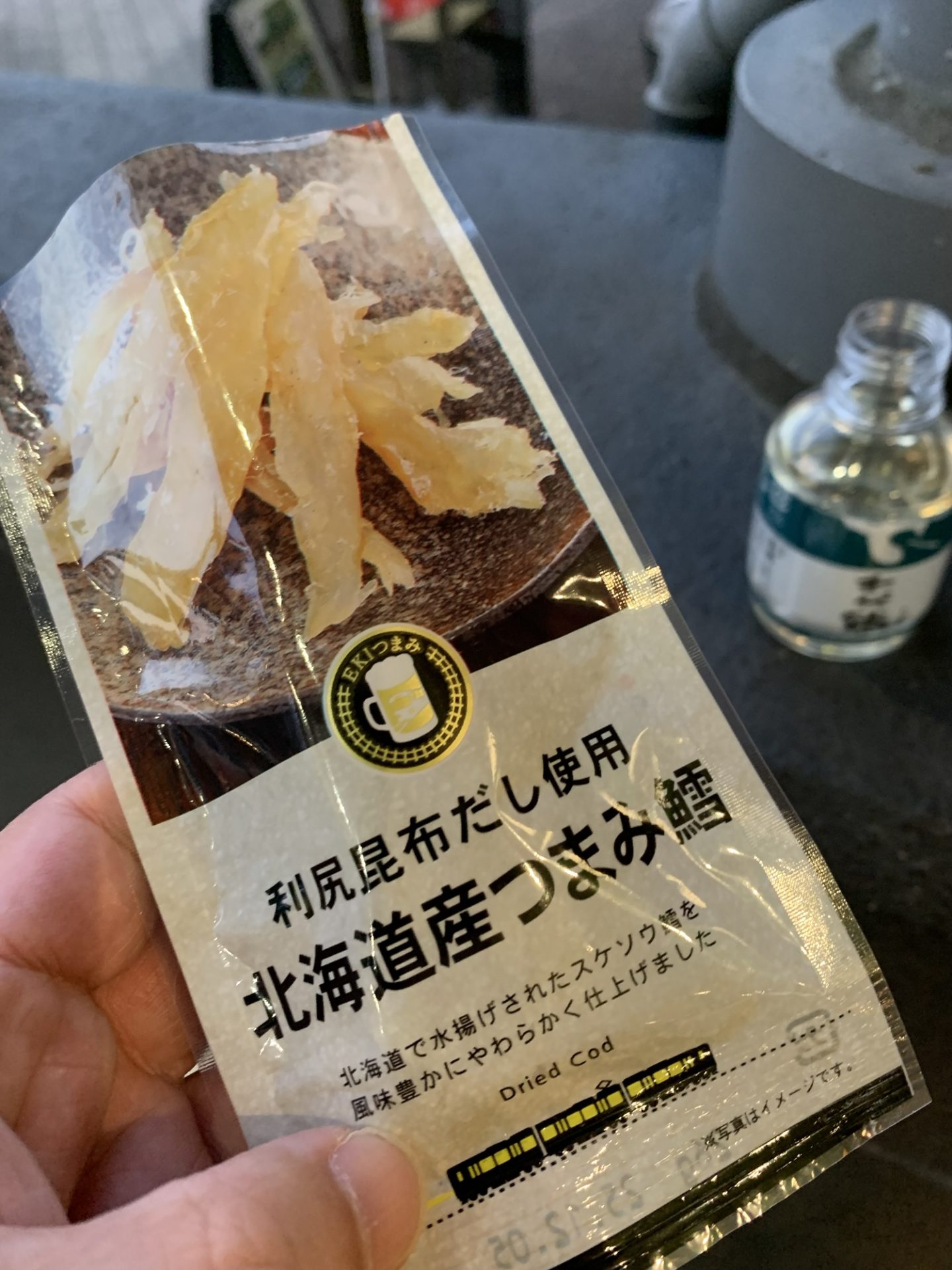 酒ときたらやっぱりつまみ。今回は北海道産つまみ鱈 をチョイス。しっかりした塩気と噛み応えがあって、千代鶴のやさしい甘みと対照的。鱈の旨みがじんわり広がる中で、地酒のコクが深く感じられて、ひとりの時間がぐっと満たされます。