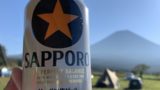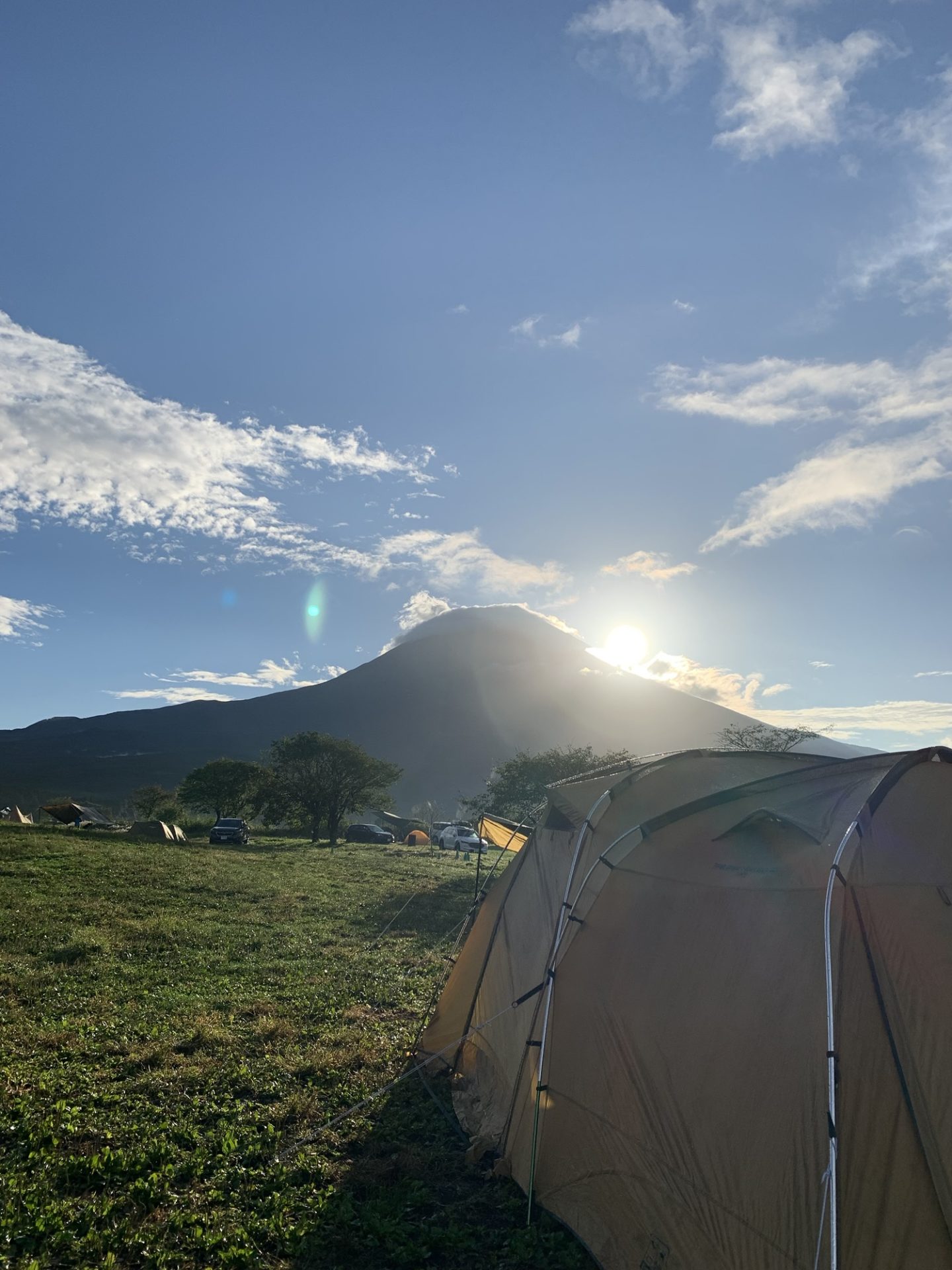 キャンプの翌朝、薄い朝靄の向こうから富士山がゆっくり姿を現しました。その雄大さに胸がすっと晴れ、思わず朝から乾杯したい気分に。笑