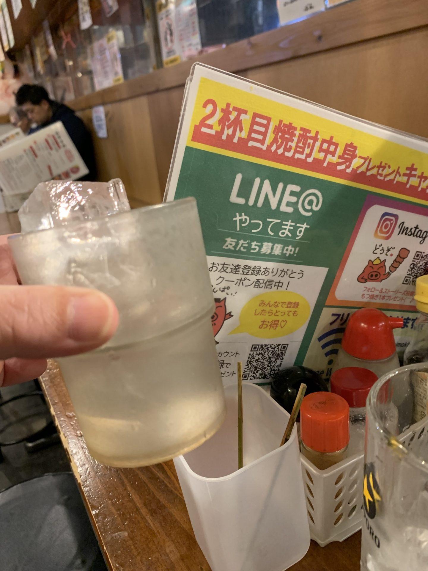 最初の一杯は、やっぱり名物のレモンサワー。炭酸がシュワッと強めで、レモンの酸味とほのかな甘さがちょうどよく、焼きとんを待つ間に喉を潤すのにピッタリ。ゴクゴク飲めて、仕事帰りのしんどさがシュッと抜けるような爽快感です。