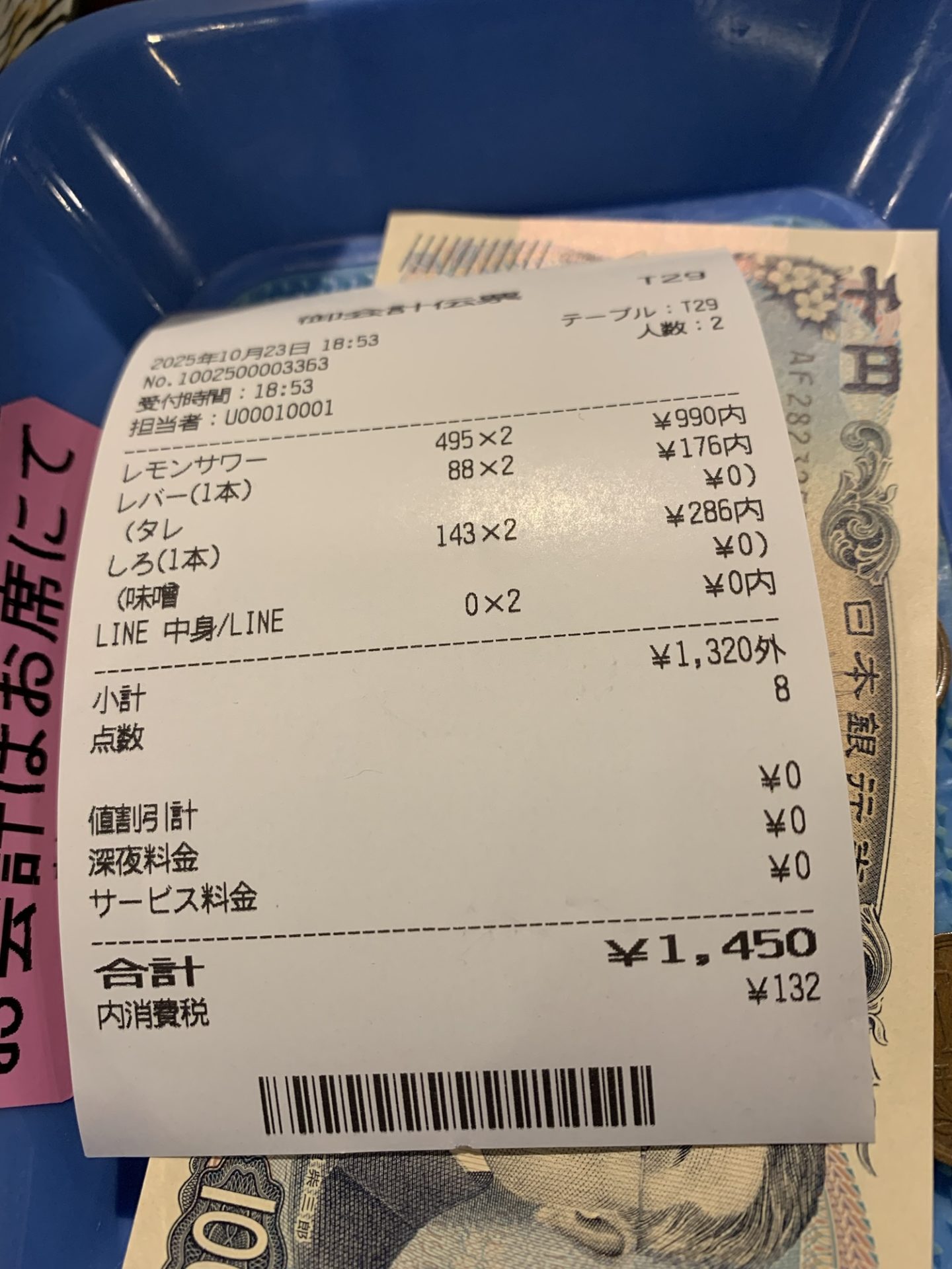 「安くて美味い」を心から体現する、まさに呑兵衛のための名酒場。串も酒も財布に優しく、しかも味は本格派――そんな贅沢なバランスを味わえるのが「ばん」の魅力。会社帰りにフラッと立ち寄って、この値段でこの満足感。そんな夜がまたひとつ増えました。