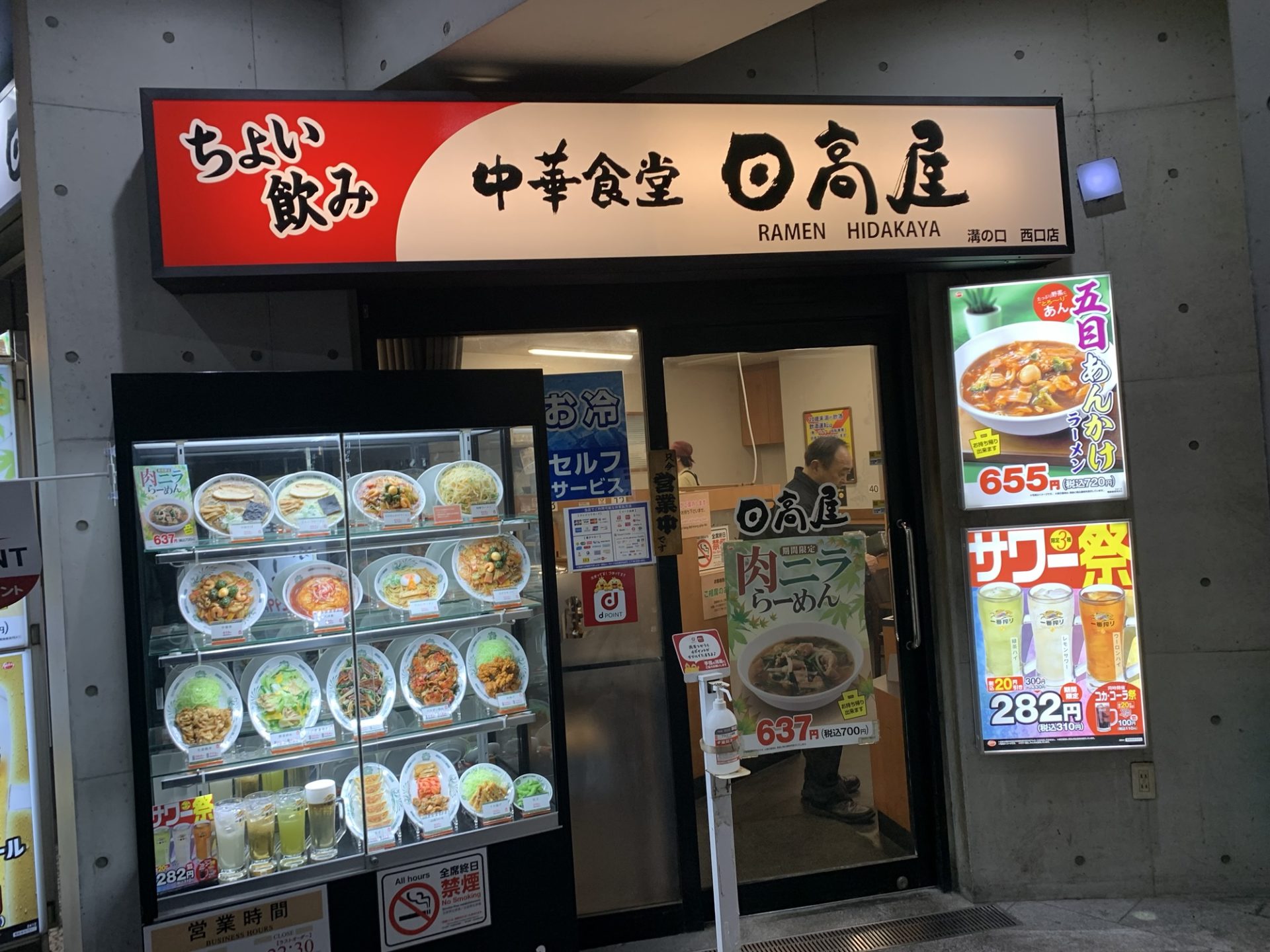 仕事でボロボロになった野郎二人が、吸い寄せられるように辿り着いたのは、赤い看板が夜闇に輝く「日高屋」。