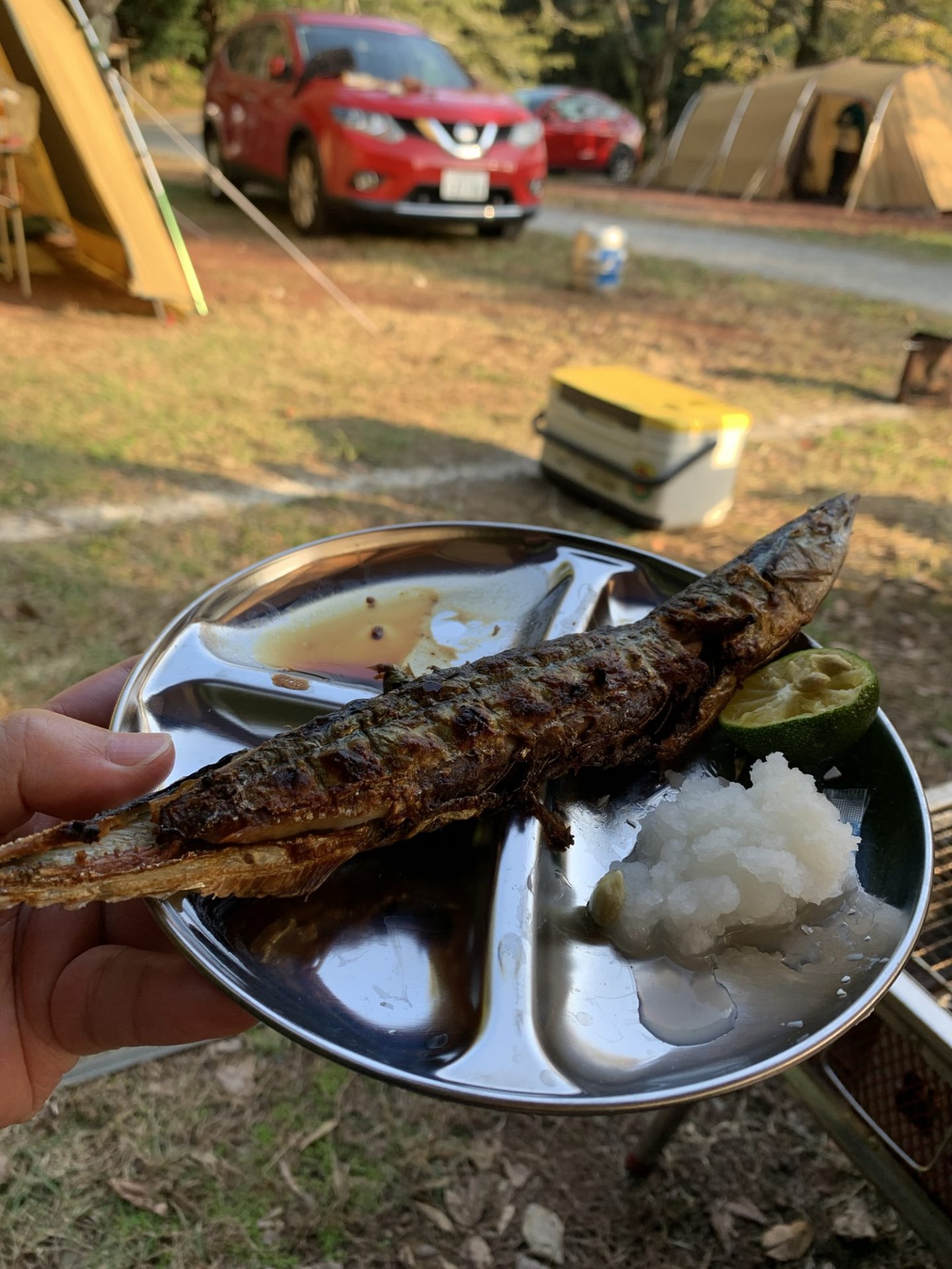 続いて、炭火で焼いた秋刀魚の塩焼き。