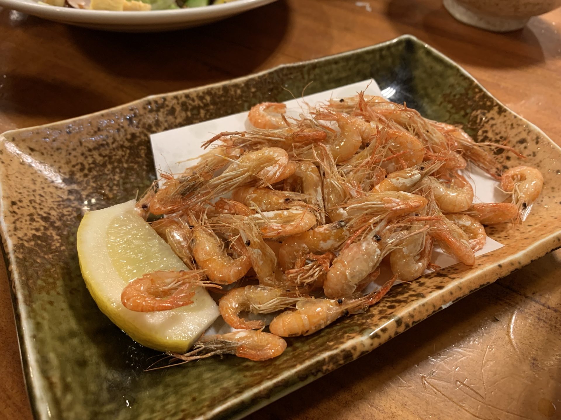 小休止の川えびは、パリッパリの食感。噛むほどにエビの香ばしさが広がり、手が止まらない。