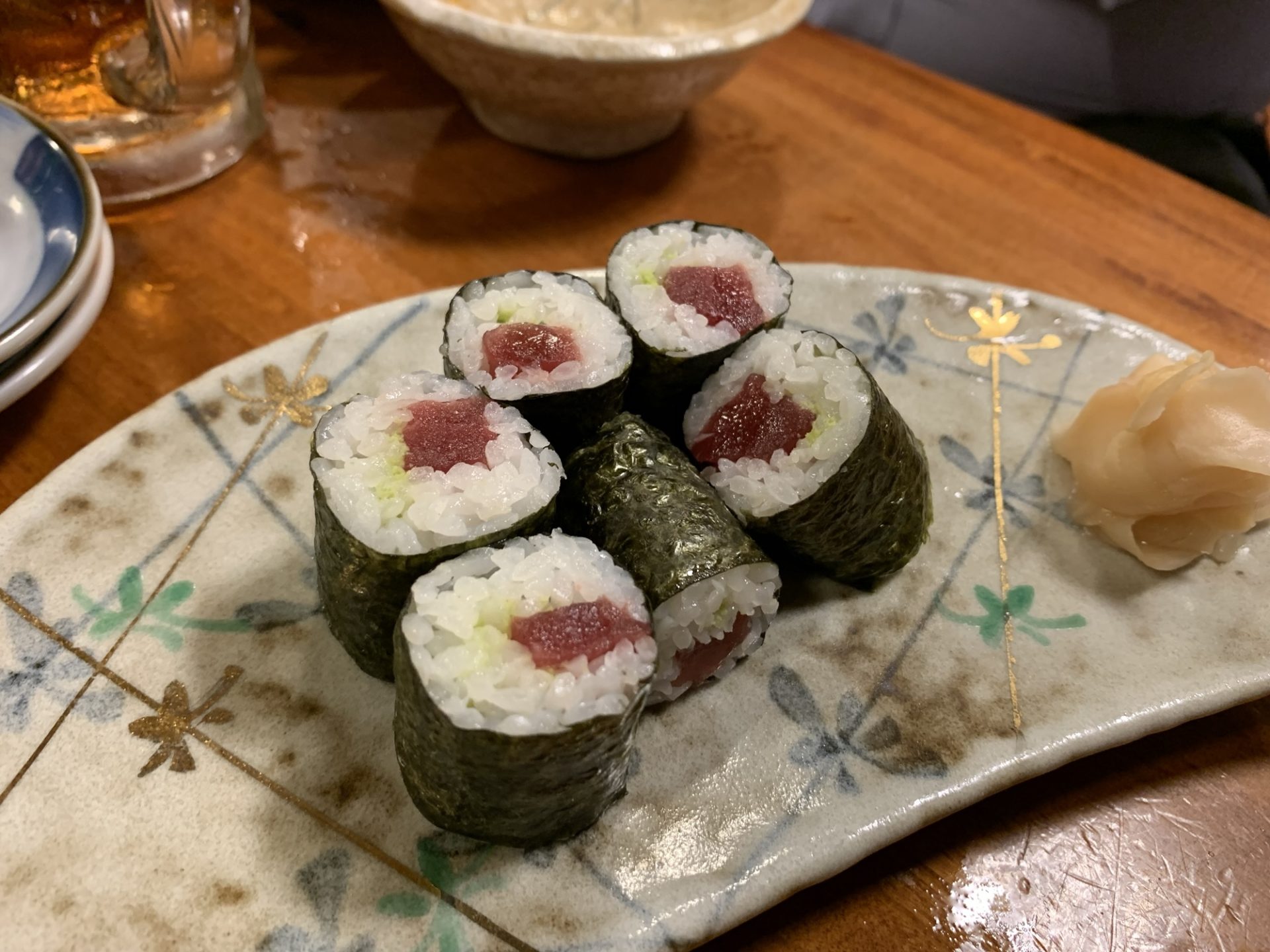 そして〆の鉄火巻。居酒屋で食べる、この「ちょっと良いマグロ」が巻かれたお寿司が、なぜこんなに胃袋に染みるのか。ツーンとくるワサビが、酔った脳を心地よく刺激する。