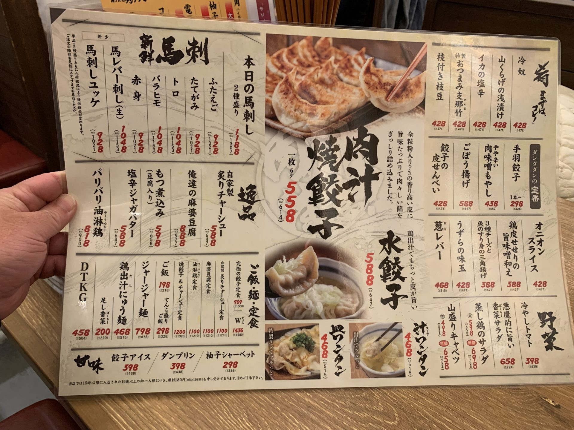 たまプラーザ駅近の「肉汁餃子のダンダダン」は、クーポンを使えば一人1,200円程度で楽しめる、まさにせんべろ酒場です。看板の餃子とパクチーサラダは安定の味。空いている時間帯なら、仕事帰りに誰にも邪魔されず、静かに喉を潤すことができます。